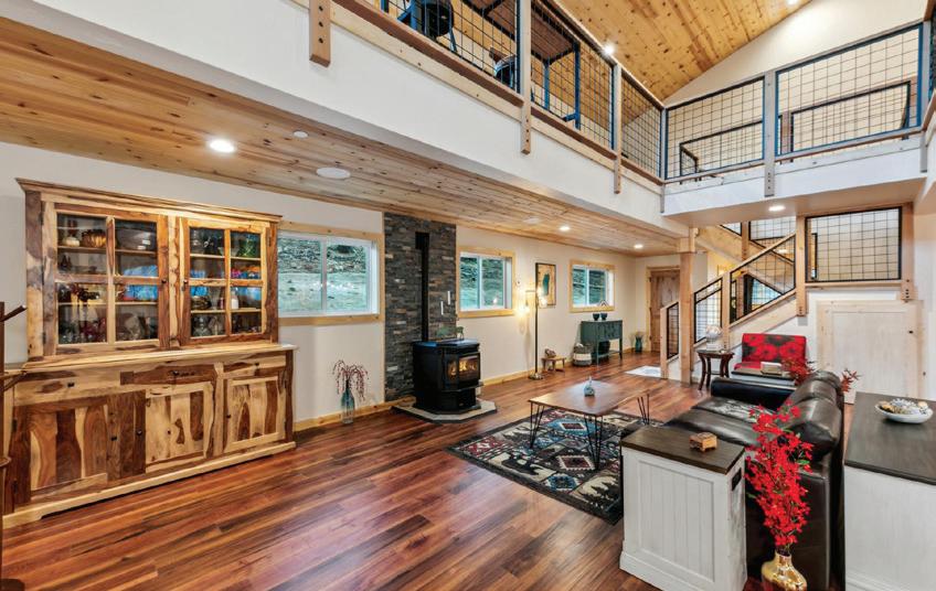Just steps from your door, enjoy world-class fishing, rafting, and boating on a river abundant with trout, steelhead, and salmon. This private retreat is surrounded by BLM land with hundreds of miles of trails for hunting, hiking, and ATV adventures. Swim in the river or unwind in the jacuzzi as the sound of flowing water fills the air. Formerly a successful HipCamp, this property offers strong investment potential, featuring two RV hookups, an oversized drive-under garage, fruit trees, animal pens, and a garden area. The land is fully fenced, cross-fenced, and gated. The custom log home combines timeless craftsmanship with modern comfort—hand-carved woodwork, vaulted ceilings, and expansive windows that flood the space with light and panoramic river views.