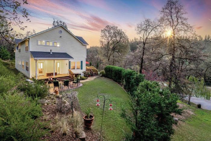 Amazing 5,200 sq ft contemporary estate on 40 breathtaking acres with Scotts Flat Lake access! Designed as an exclusive retreat, this dramatic home features vaulted ceilings, expansive picture windows, and a stunning great room that flows to the formal dining area and chef’s kitchen. Enjoy a huge patio and Natural Design saltwater pool, multiple bedroom suites—including a spectacular primary— plus slate roof, stucco siding, strong well, and Starlink Internet. Just minutes to the boat ramp and Historic Downtown Nevada City—an exceptional opportunity!