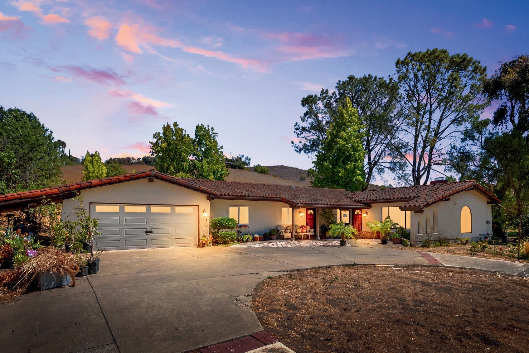 A remarkable 5-bedroom, 5-bathroom, Mediterranean Villa on a breathtaking hilltop parcel! Over 6,300 sq ft of luxury living with over 5,000 sq ft on one level! Stunning travertine & cherry wood floors with in-laid Celtic accents! 1,000 sq ft 'Gathering Room' on lower level with wine cellar. 72' solar heated pool, 14KW Watt Solar, Al Fresco outdoor kitchen including imported Italian Pizza oven! Gently tiered gardens with a 35 zone irrigation system, 4-car tandem garage, carport, huge garden shed with Italian washing station, 13 fruit trees and so much more!