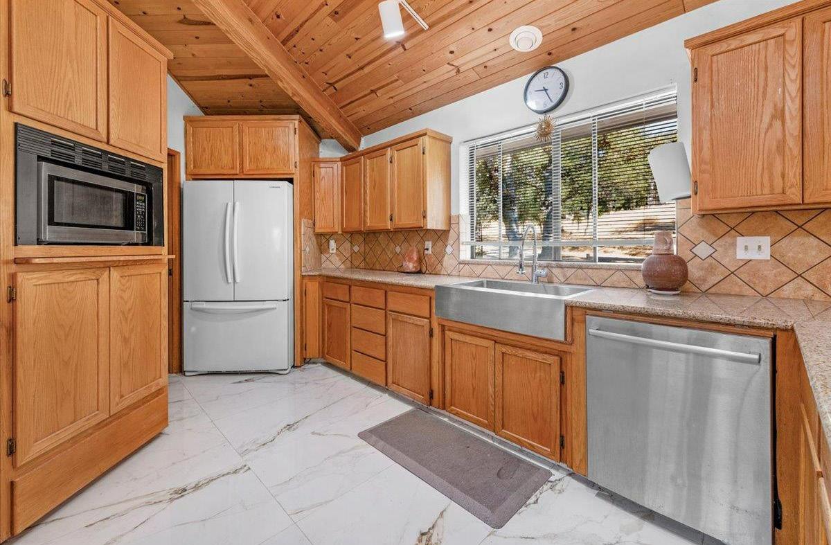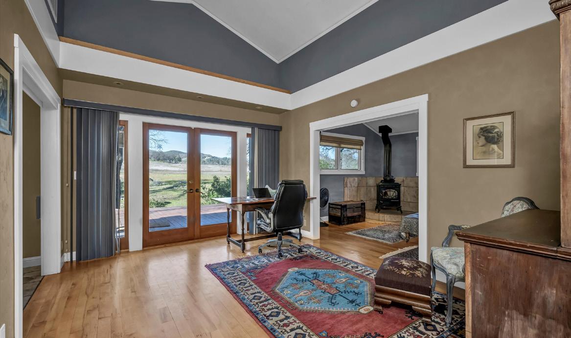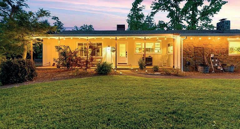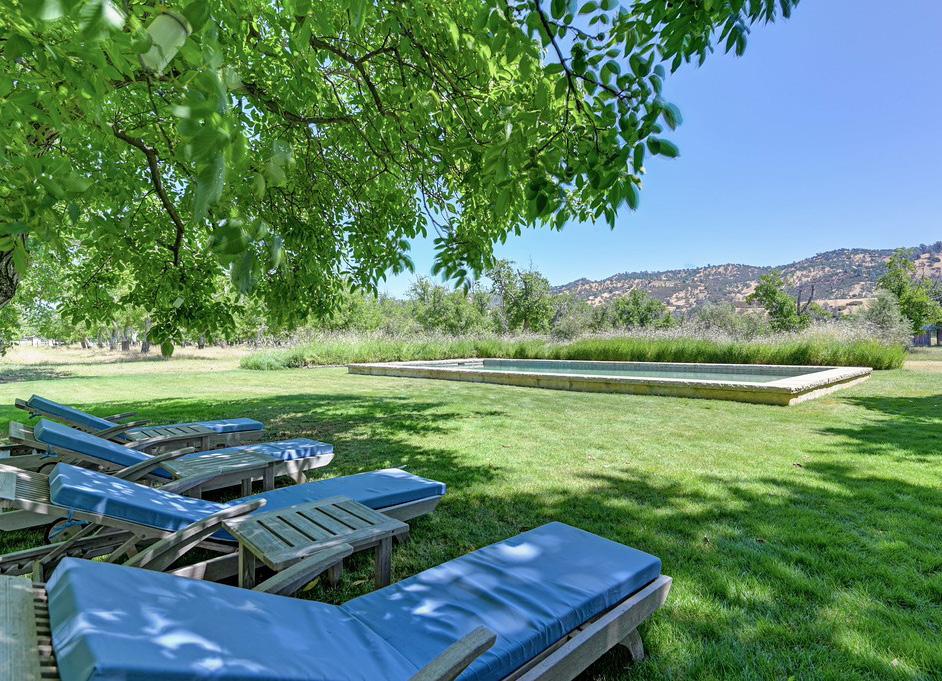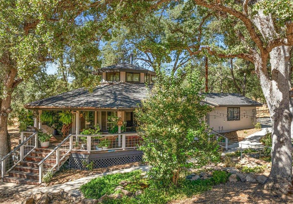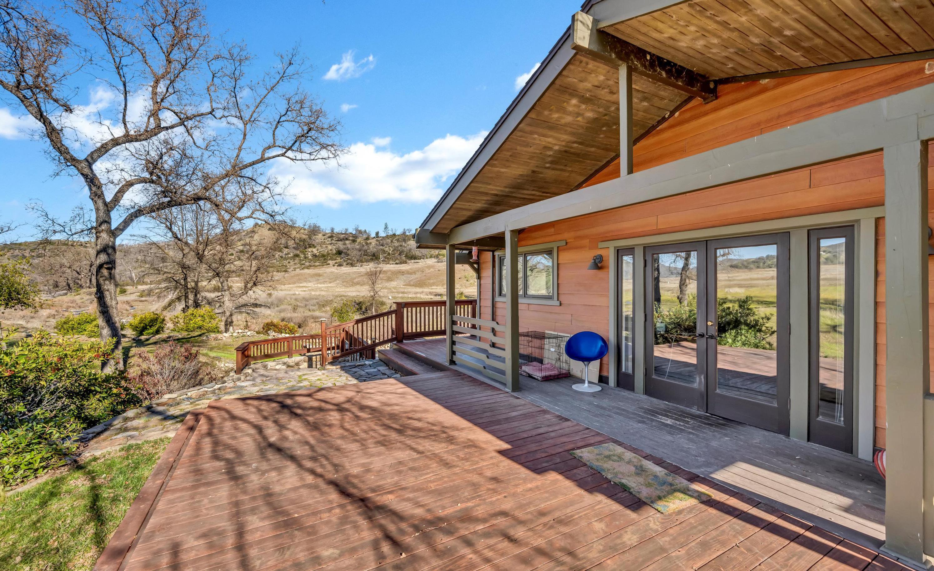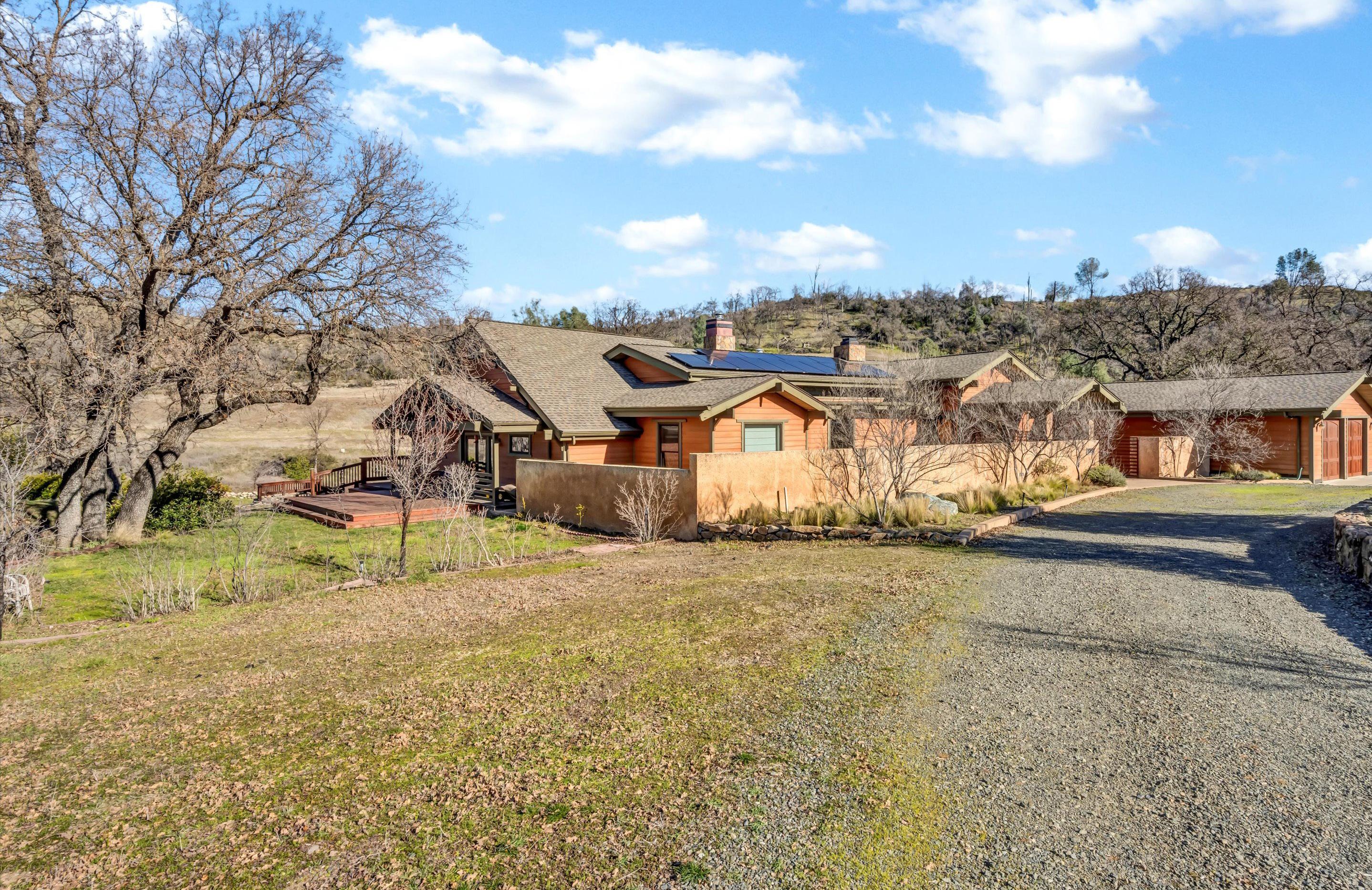 5 acre ranch, 3 bed 2 bath, architectural gem, new HVAC, Solar (paid), entry gates with key pads, new circular concrete driveway, concrete pathways surround home. Brand new, 1500 gal septic system. Own artesian well with new pump, all new electrical. Solar water heater (paid). Large redwood wrap around porch. 6-seat Jacuzzi off the primary bedroom. Fruit orchard (auto drip) and small vineyard. Multiple ponds attract wildlife. Two-story barn with brand new electrical and 220v for workshop, office, or ADU. Two-year old roof on house and barn. Home brush-painted last fall. Soaring 30-foot ceilings, large double pane windows, and 7 skylights fill the home with soft natural light, highlighting the luxury finishes throughout. Tucked away for maximum privacy, this is luxury living at its finest. Sale includes John Deere Gator diesel tractor and new remote-control lawn/bush mower, and various ranch equipment. See attached list of extensive upgrades. Luxury living and move-in ready!