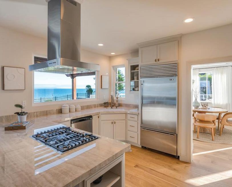 Perched on Depot Hill, this Santa Barbara coastal-inspired home captures what Capitola living is all about endless ocean views, open spaces filled with natural light, and an effortless sense of calm. From the moment you step inside, the soaring ceilings and walls of windows frame the coastline like a piece of art. Sunlight pours across wide-plank wood floors, while a custom-tiled fireplace and beautifully detailed staircase add warmth and character. The kitchen is as functional as it is beautiful, with premium appliances, porcelain counters, and panoramic views that make even everyday meals feel special. An elevator connects each level, adding ease to daily life. Upstairs, the primary suite feels like a true retreat. A spa-like bathroom features a freestanding tub perfectly positioned in front of a window overlooking the Pacific, a front-row seat to sunsets that turn your evening ritual into something extraordinary. Outside, the property encourages you to relax and savor the surroundings. A lovely pergola-covered patio provides the perfect spot to enjoy dinner, morning coffee, or an evening glass of wine as the waves gently roll in. Every detail of this home was designed to celebrate its unique setting, making the ocean not just a view, but an integral part of your daily life.