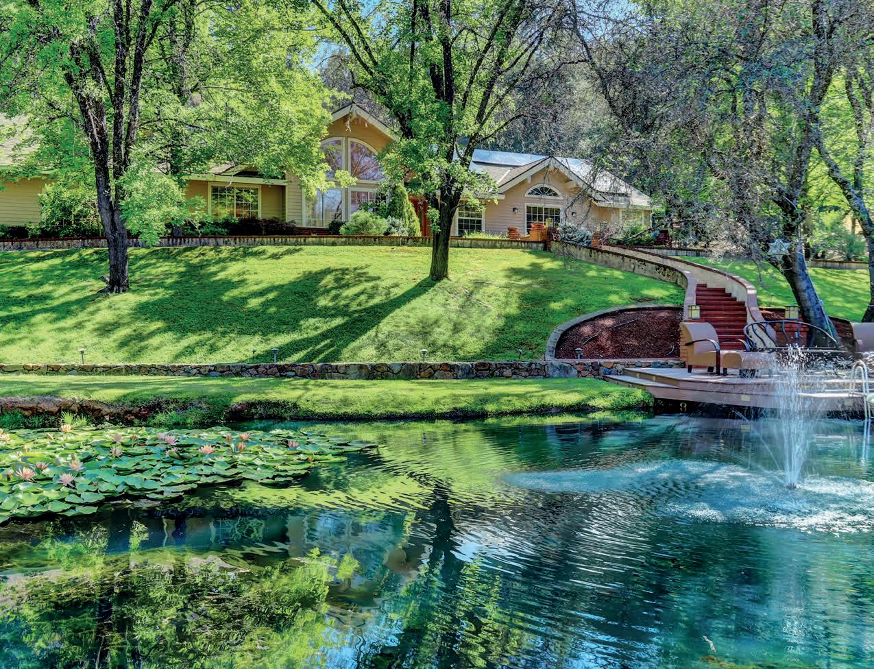 Absolutely charming 3-bedroom, 3-bath, 2,350 sq ft one-story home perched above a year-round spring-fed pond in desirable Round Valley Estates. Situated on 4.14 acres, this garden property offers nature walks, breathtaking gardens, and abundant natural light. The spacious living room features vaulted, open-beam ceilings and picture windows, while the gourmet kitchen and formal dining room are perfect for entertaining. Enjoy the covered outdoor arbor, private observatory, and romantic master suite with jetted tub. The pond includes a deck, boat, and swimming access. Added perks: water canal, newer 40-year roof, whole-house generator, and solar. A true vacation-like retreat minutes from Grass Valley!