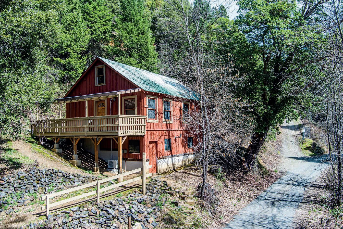 Delightful 1880's Vintage Victorian currently used as an Air BnB but would make a delightful home! Beautiful redwood siding and mature landscaped gardens set the mood for the desirable in-town living scene! Ironwood decks invite you into the spacious great room with high ceilings, loads of stain glass windows throughout and a sweet fireplace made of old San Francisco cobblestones! The sitting room off the living room would be a great home office and is also a main level bedroom. The upstairs bedroom is huge with sitting area; open balcony overlooking town and loads of storage. The quaint kitchen is efficient and convenient! You will love the sense of privacy when you are in the home with the stained-glass windows and the mature landscaping that makes one feel secluded during city life! This is a rare opportunity to own one of Nevada City's most adorable properties!!!