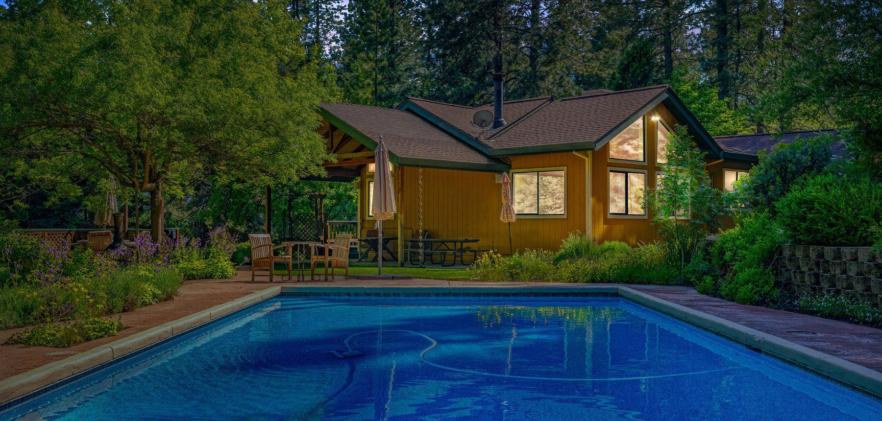 Greenstone Court, Nevada County’s premier estate! This stunning Tahoestyle home spans 8,700 sq ft on 5 private acres, complemented by a 2,798 sq ft guest house and an additional 3-acre parcel totaling 13.2 acres. Custom-built with blue rock and brick, the grand open floor plan features vaulted ceilings, a formal dining room seating 20, a cherry wood office, and access to a solar-heated Pebbletech pool. Enjoy a 7-car garage with a 42’ motorhome bay, a theater, heated workshop, hiking trails, gazebo, par-3 golf course, and more. Luxury and privacy unite in this unmatched Nevada City estate!