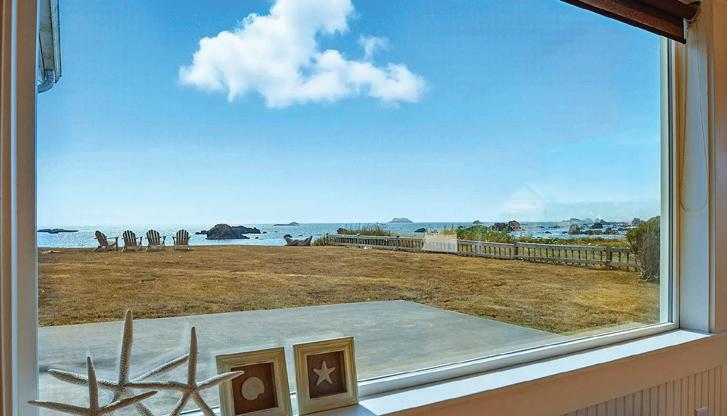 Presenting a modern home on the bluffs overlooking the ocean with private hot tub & three gas fireplaces. This two-story home offers unobstructed panoramic views of the Pacific. The main open living area features standout architecture with high-quality materials and superior craftsmanship as seen by handmade staircases, wood-paneled ceilings and exposed trusses. Natural light and 180 degrees of ocean views flow in through a row of picture windows. The full kitchen is equipped with a Dacor gas cooktop, double Dacor ovens, and a Sub-Zero refrigerator and freezer. Indulge in the luxury of this notable ocean getaway just minutes from the unspoiled seaside town of Elk. Enjoy spectacular whitewater ocean views while you soak in the private outdoor hot tub on the spacious deck. The terrace that overlooks the blue Pacific is also an excellent spot for sunning or enjoying an alfresco meal. You are less than two miles from a two-star Michelin restaurant, the Harbor House. The two downstairs bedrooms have their own kitchenettes, perfect for midnight snacks or sunrise coffee. All the bedrooms boast direct outdoor access. For work or entertainment at home high-speed internet is available with mesh WiFi for seamless telecommuting.
