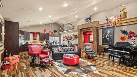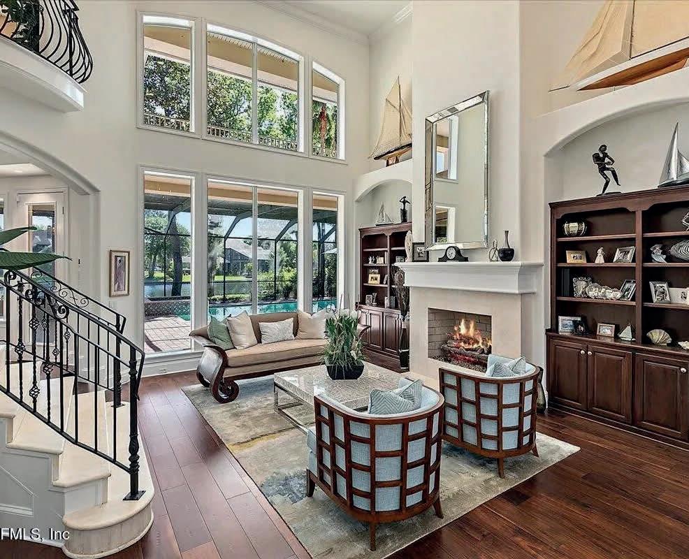 a r e a s , h i g h c e i l i n g s , h a r d w o o d o a k f l o o r s , t w o f i r e p l a c e s , a n d a