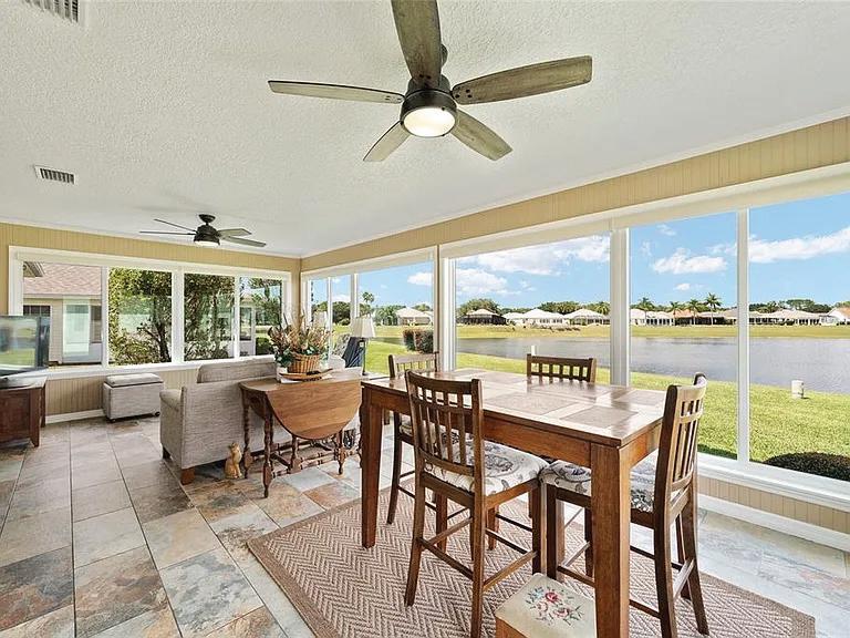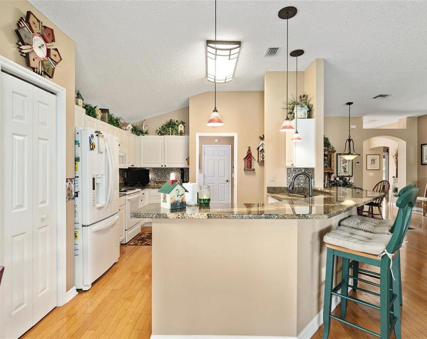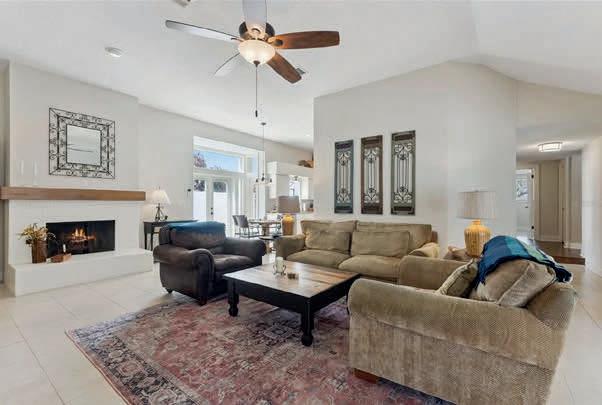 Welcome to this beautifully maintained four-bedroom, two-bath home nestled on a quiet cul-de-sac in the gated Stonebrook Village Country Club Estates. Freshly repainted and move-in ready, this residence offers a bright, airy feel with thoughtful updates throughout. - Interior HighlightsSpacious open-concept living room with a cozy fireplace - Brand-new luxury vinyl flooring in the main living areas and plush carpet in the bedrooms - Full-size dining room, breakfast bar, and a cheerful breakfast nook — perfect for both everyday meals and entertaining - Expansive primary suite with dual walk-in closets and a large en-suite bath featuring two separate vanities - Three additional bedrooms, each generously sized with ample closet space - Outdoor Living - Step into the light-filled screened porch with beautiful tile flooring — ideal for relaxing year-round - Enjoy your private backyard oasis with a sparkling blue lagoon swimming pool, complete with a new liner and pump - Community & Location - Stonebrook Village offers a clubhouse with a golf pro shop, grill/restaurant, locker rooms, and rentable event space - Community amenities include tennis courts and a pool, with pickleball play possible on the courts - Conveniently located near new shopping centers anchored by Publix, medical facilities including a hospital, and a growing public center — making this an exciting and up-and-coming area This home combines comfort, style, and community living in one of the area’s most desirable gated neighborhoods