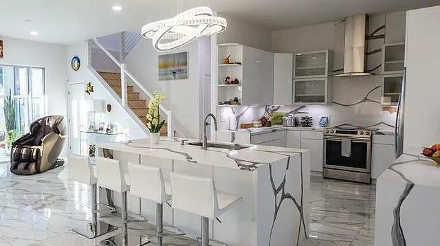 Must see, exceptionally spacious and beautifully “Design Award” winning rebuilt and recently curated “like new”, two structures, and two story Circa 1930’s Spanish Revival Style Historic House, about 4,300 sq ft, 7 bedrooms, 7-1/2 bathrooms, two kitchens, in the heart of East Hollywood Lakes seating on a 21,200 sq ft fenced-in double lot, main road and alley access, 8-car fenced three different carports, multiple angle security camera system, detached “Pool front Cabana” perfect for family gatherings & entertaining, equipped with Control4 smart system commands, and subwoofer enhanced sound system, full independent kitchen, high end appliances, Italian cabinets, Spanish Neolith porcelain counter tops, plenty of storage and closet space, natural gas & plumbing outside grilling area ready, Gazebo covered natural gas Fire Pit, Hot-Cold Plunge, Outdoor Sauna, Outdoor Shower, privacy fenced-in self vacuum, bubbler, water jet, lit below ground oversized multi level pool, beautifully landscaped 3 gardens, outdoor Control4 operated multi zone sound and lighting systems. The main house has an amazing Italian cabinet oversized kitchen, smart state of the art appliances with a 48” semi professional gas stove, pot filler, wine cooler, hidden wall refrigerator-freezer, dishwasher, multiple ovens, built in smart coffee maker, Spanish Neolith Porcelain counter tops, pantry, laundry and private maids quarters.