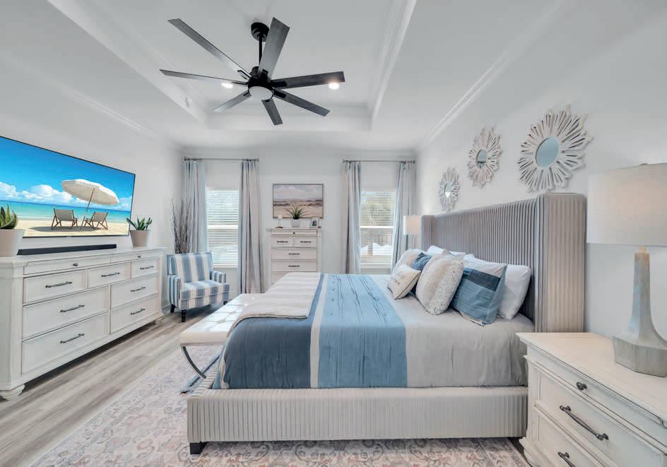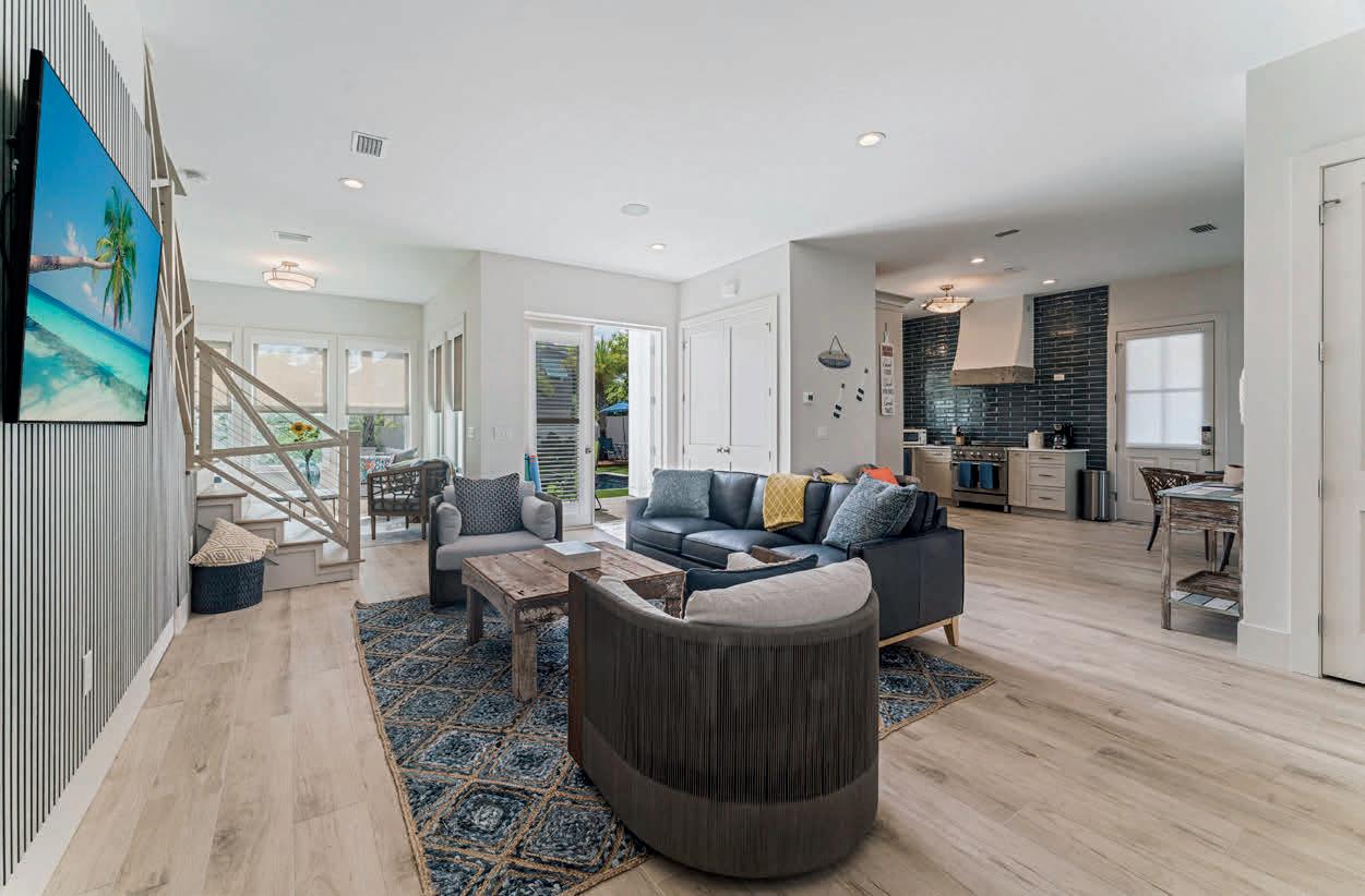 Located just 80 steps from the white sand beaches of the Emerald Coast, this 4 bed, 3 bath home in the gated community of Sunrise Beach offers private beach use and is a rare investment opportunity south of Scenic Highway 30A. With a proven track record of triple-digit annual rental income, this turnkey property is an ideal choice for investors seeking consistent returns in one of the most desirable vacation rental markets on the Florida Panhandle. Spanning 2,097 square feet, the home’s layout includes two private primary suites with ensuite bathrooms, offering flexibility for hosting multiple families or maximizing guest capacity. The open-concept main living area features hardwood floors, abundant natural light, and a modern kitchen with new quartz countertops, stainless steel appliances and sleek cabinetry. It’s a layout that’s both functional and appealing to today’s luxury vacationers.