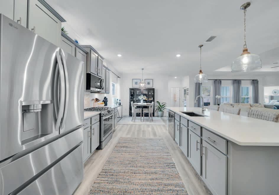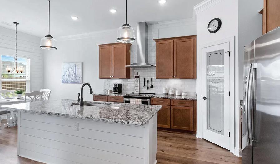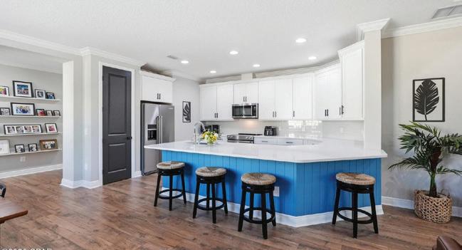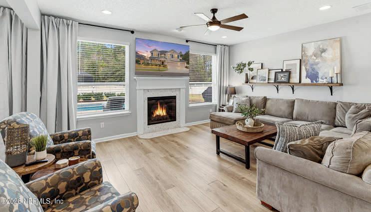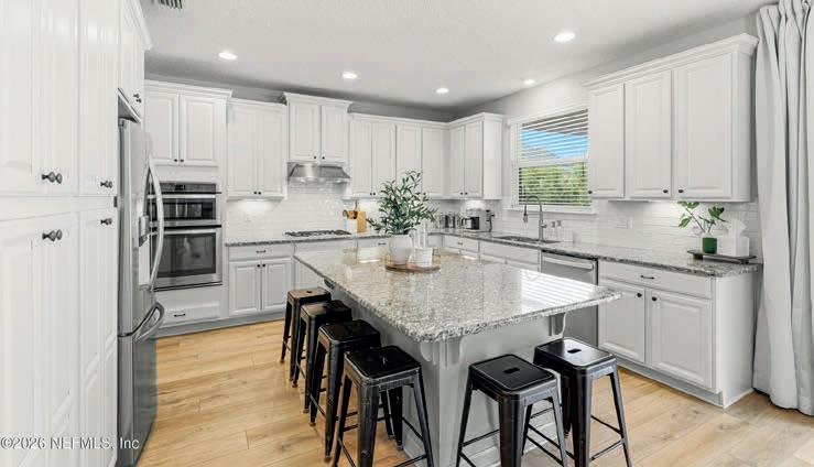 The only three-story home in Deer Moss Creek with a private in-law residence and separate entrance, 153 Caraway Drive offers a rare opportunity for luxury multi-generational living in one of Niceville’s most sought-after communities. Built in 2024, this exceptional 3,822-square-foot, 4-bedroom, 3.5-bath luxury estate was thoughtfully designed to provide both connection and privacy across three levels of beautifully appointed living space. From the moment you arrive, the oversized parking area and architectural presence set the tone for what lies within. Step inside and you are welcomed by 12-foot ceilings, engineered hardwood floors, and a stunning gas fireplace that anchors the open main living space. Thoughtfully designed for both everyday living and entertaining, the chef’s kitchen showcases granite countertops, custom cabinetry, tile backsplash, a large gathering island, integrated Thermador refrigerator, and Z-Line gas cooktop.