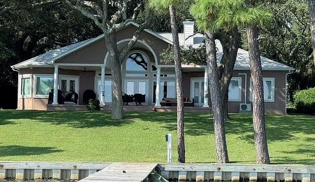 From the moment entry is made through this gated estate, a sense of peacefulness and tranquility transcends. One is greeted by Majestic Oaks, Magnolias, Pines and Azaleas as the circular drive leads to the handsome, quality built waterfront home where quality meets comfort in perfect style. Every detail from crown molding to garage storage has been lovingly updated and maintained. Magnificent views abound from oversized brand new storm rated windows extending across the entire Intercoastal Waterway/Sound side of the home; and the veranda offers outdoor living to include gas grill, Blackstone griddle & Oni pizza oven, plus panoramic views of the Sound and a stretch of the undeveloped pristine Santa Rosa Islands ( peeks of the Gulf). The waterfront features new seawall, dock decking, metal boathouse roof, boat lift motors and water & electric to the dock. The dock includes a covered boat lift and jet ski lift. The interior of the home is equally updated and pristine. Every window was replaced in 2025 with Impact Low E Glass. Rooms are spacious, lighting and fixtures modern, closets customized, Jack and Jill style bathrooms for guest, fantastic Mbath, plus two half baths (one accessible from garage) and too much more to list. BIG PLUS, located in Flood Zone X.