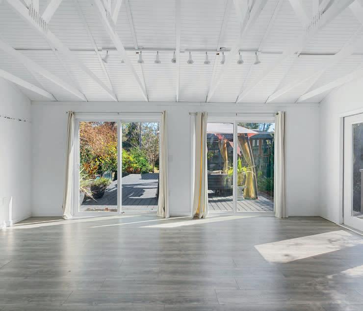 The detached guest cottage features its own private driveway and entrance, allowing it to function as a completely separate rental or private residence. This studio-style retreat includes a stylish kitchen, living/sleeping space, and a beautifully appointed bathroom--ideal for guests or additional income.