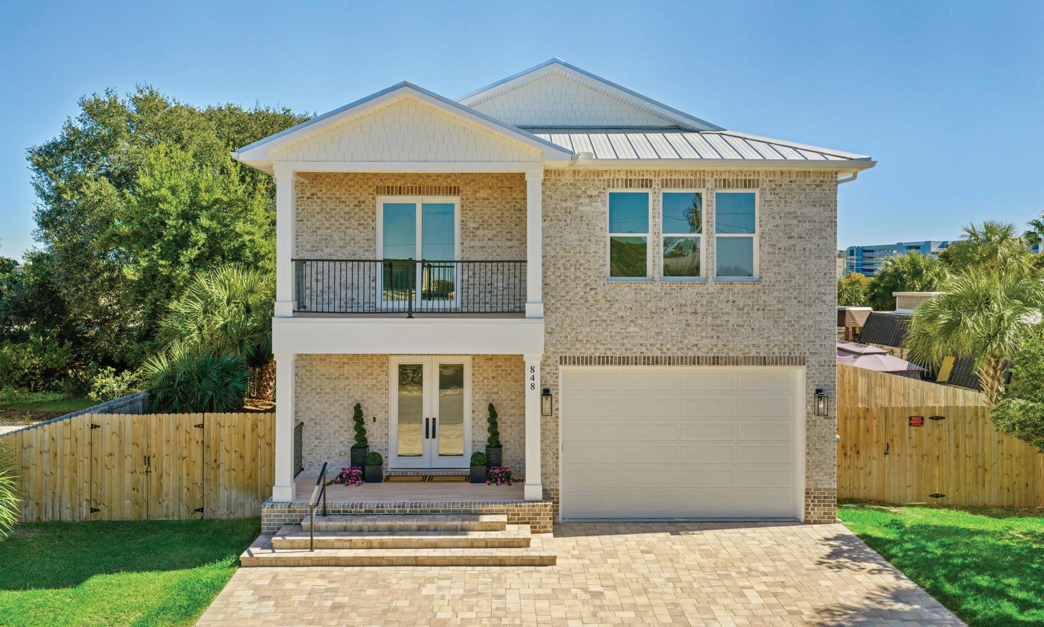 Modern coastal living meets refined craftsmanship in this newly built Okaloosa Island residence, where luxury and comfort come together just steps from the emerald shoreline. Offering over 4,000 square feet of thoughtfully designed space, the home showcases wide-plank engineered wood flooring, soaring 10-foot ceilings, and solid oak doors that create a sense of openness and sophistication throughout. The gourmet kitchen is a true showpiece, featuring quartz countertops, extended cabinetry, a striking 48-inch Forno gas range with double oven, and an oversized island ideal for gathering and entertaining. The first-floor primary suite serves as a private retreat with a spa-inspired bath, floor-to-ceiling tiled shower, dual shower heads, and a sleek floating double vanity, with direct access to the backyard for seamless indoor-outdoor living. Upstairs, a spacious secondary living area opens to a covered balcony with tranquil views of Santa Rosa Sound, while each guest bedroom enjoys direct access to a full bath, including a beautifully designed Jack-and-Jill layout. Outdoor living is elevated with a covered porch featuring tongue-and-groove ceilings and a fully equipped summer kitchen. The fenced backyard offers room for a custom pool, while a generous side yard provides rare boat or RV parking. Ideally positioned between the Gulf of Mexico and Choctawhatchee Bay, this home offers effortless access to beaches, boating, dining, and nearby Destin and Fort Walton Beach.