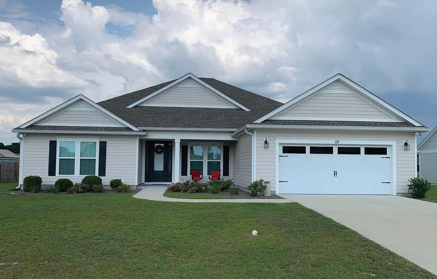 This home has smart construction providing super strength and energy efficiency with the durable technology of Nudura insulated concrete forms (ICF)! ICF means lower costs for insurance, lower energy and peace of mind during storm season! Additional luxuries of this beach home include a two car garage providing additional parking and storage, a utility closet, and a work space. This upscale home offers an open concept design with modern white walls, putty colored polished concrete floors & large windows that fill the rooms with natural light. It’s effortless flow will take you from the entrance through the spacious living area, which includes a fireplace, and into the kitchen where you’ll find stainless steel appliances, a kitchen island with breakfast bar, and open concept shelving in addition to regular shelving for plenty of storage space and style! The private master suite is split from the rest of the bedrooms and is located on the back of the home and in close proximity to the kitchen and screened back porch. The porch, and quaint seating area nestled in the beautifully landscaped and fenced back yard, are perfect for a morning cup of coffee & evening sunsets... you can even hear the waves from the back porch on most days! The community pool is only a few houses down & close to beach access. This makes for an ideal primary home or a second home that is low maintenance. It’s time to take the plunge and live at the beach!