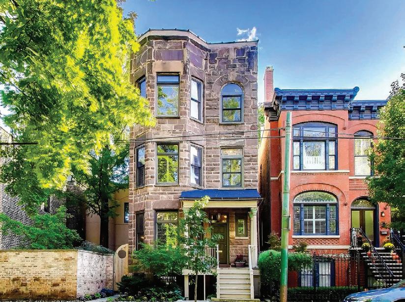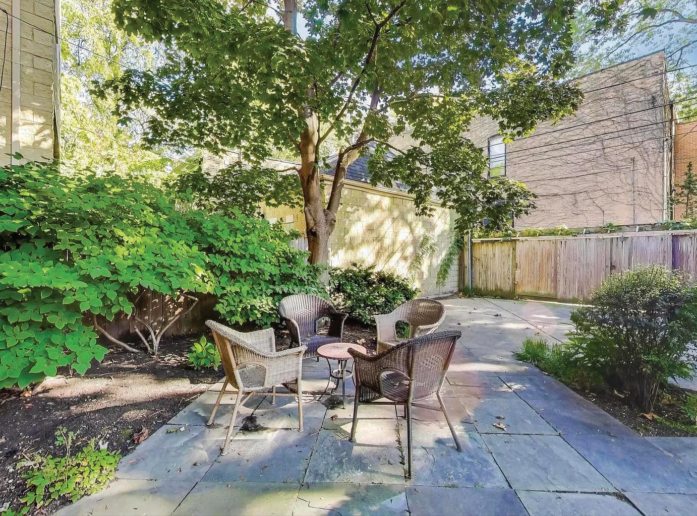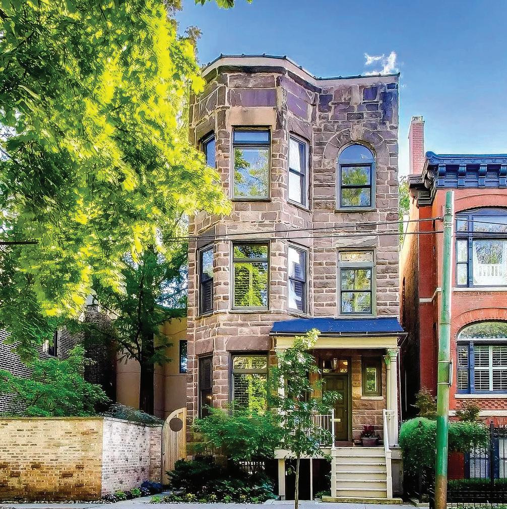 One-of-a-kind house available once in a generation. This stately Greystone was purchased along with the adjacent vacant lot in the late 1980s, and three of the four levels were completely rebuilt inside. The top floor remains a vintage 1,376 sq ft 2-bedroom, 1-bath apartment with study, sitting room, two decorative fireplaces, and a renovated kitchen and bath. A rear extension across the adjoining lot created a gracious front courtyard hidden behind a tall brick wall, offering complete privacy in the heart of Lincoln Park. The fenced backyard provides extensive entertaining space and extra parking for two cars beside the brick two-car garage.