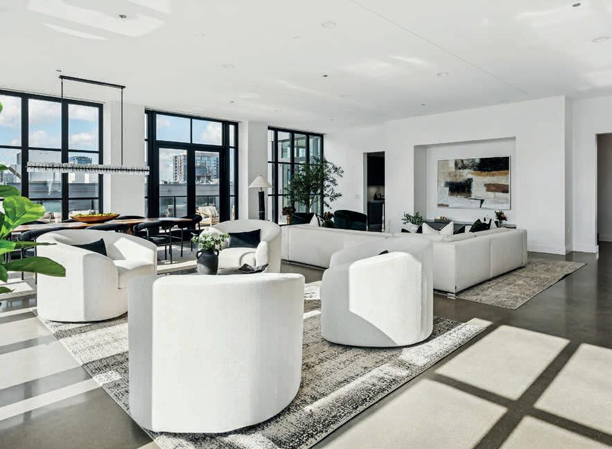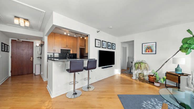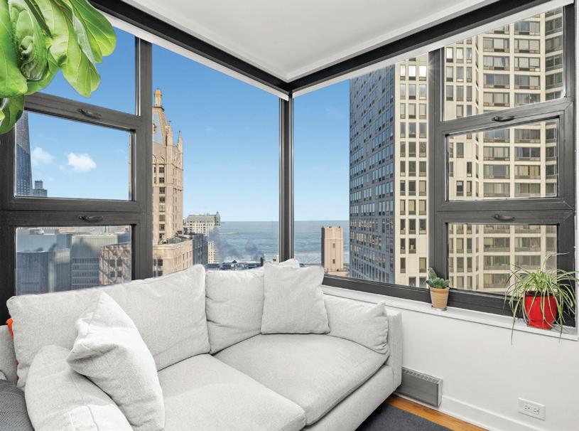 nestled in the Historic Prairie District of the South Loop. This impeccably designed threebedroom, two full and two half bathroom townhome boasts an expertly crafted living space with completely customized modern touches. Features include heated herringbone hardwood floors on all levels, an inviting 60-inch vent free gas fireplace with custom shelving, minimalistic dimmable LED lights throughout, and automatic window shades. The expansive living and dining area offer a seamless blend of style and functionality.