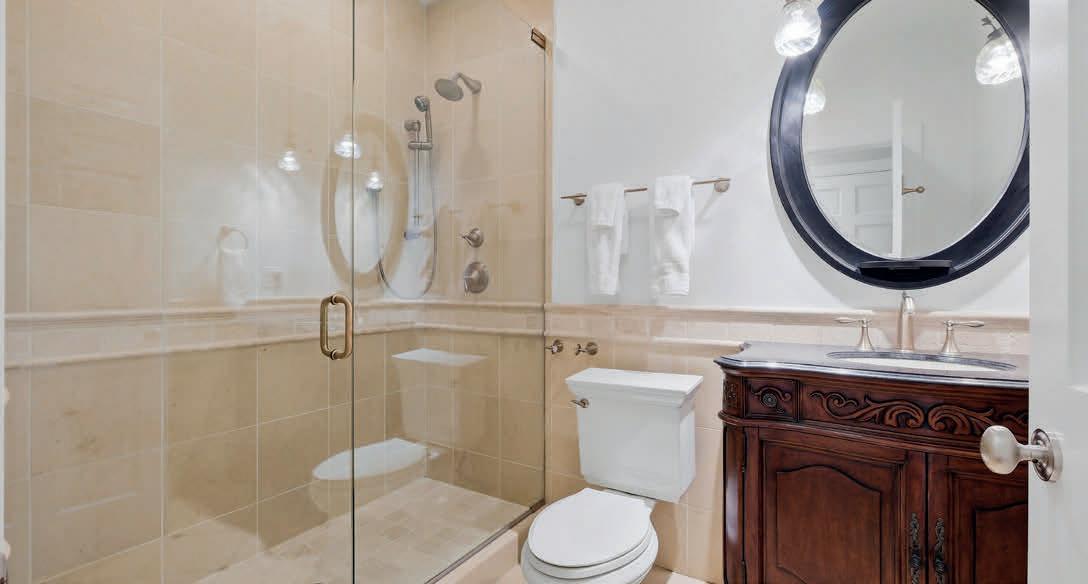 The primary suite is a true retreat, offering dual walk-in closets, and a spa-caliber bath with heated floors, walk-in shower, and dual vanity. A spacious second bedroom, abundant storage, rich hardwood floors, crown molding, and thoughtfully selected finishes complete the interior.