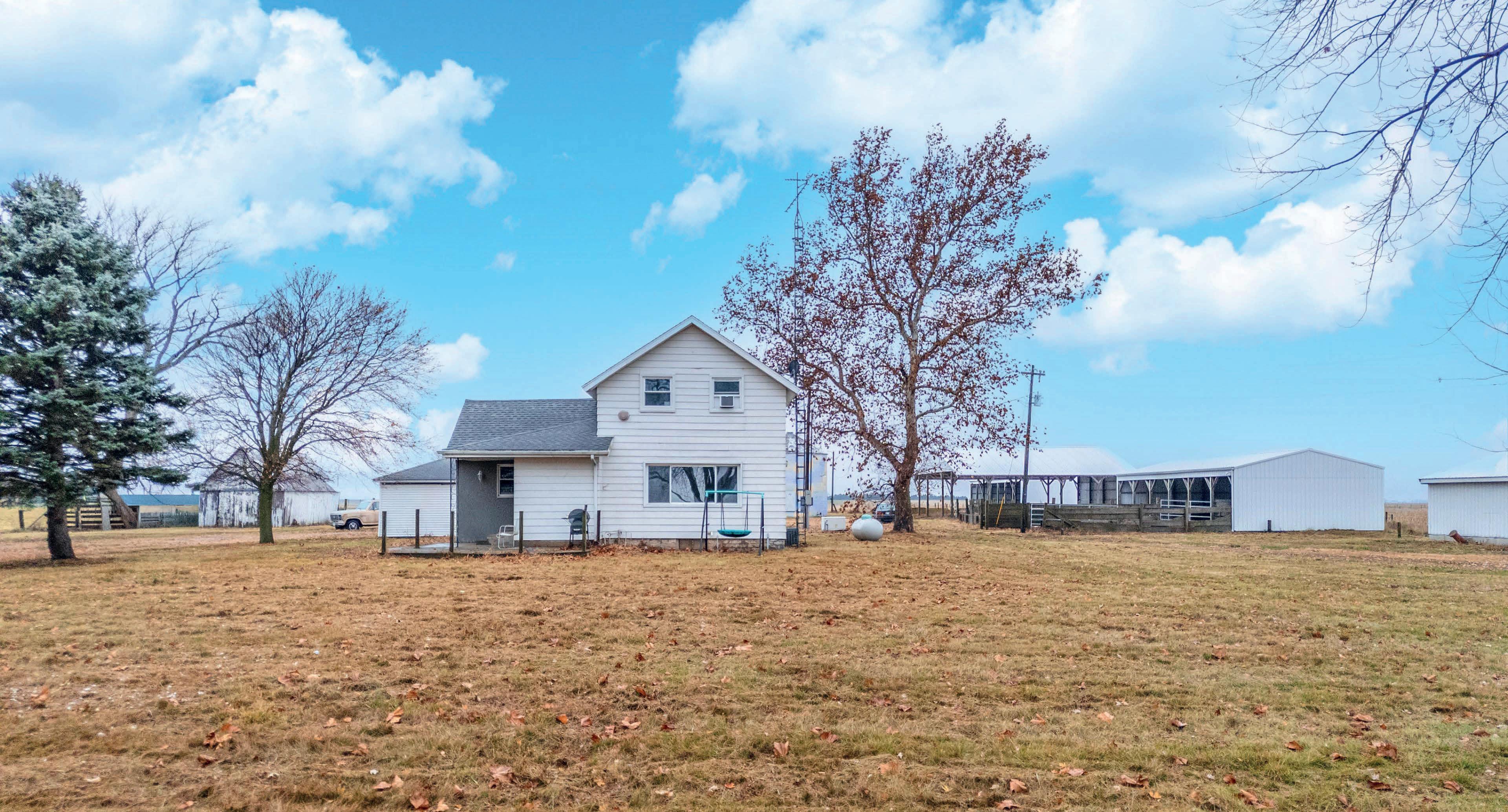 Welcome to peaceful country living meets practical farm life! This spacious home offers over 1,800 sq ft, featuring 3 bedrooms with the potential for a 4th (den), and 2.5 bathrooms. The main level includes a bedroom and a flexible den space that could serve as a guest room or office. Enjoy a roomy dine-in kitchen, family room, and living room, providing plenty of space for comfortable living and entertaining. Outside, you’ll find everything you need for your country lifestyle! The property includes a 2-car detached garage, whole-farm generator, and multiple functional outbuildings - including two cattle sheds, a hay shed, a hog confinement shed with pit, a 36x46 machine shed, and a grain storage bin. With beautiful open pasture, this property offers endless opportunities for livestock, gardening, or hobby farming. Recent updates include some newer flooring and windows installed within the last 3 years. Whether you’re dreaming of your own homestead or seeking an investment property with agricultural potential, this farm is ready to make your country dream come true! Property is being Sold “As Is”