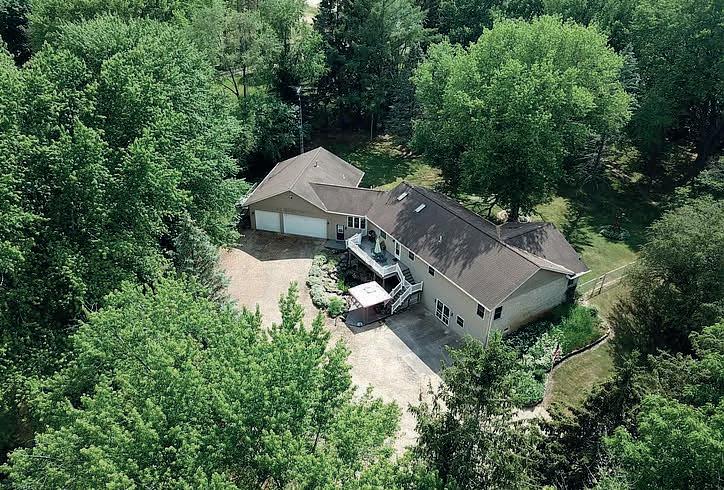 Welcome - an exceptional private estate set on 5.5 acres, this 4 bedroom, 3.5 bath retreat offers an unmatched blend of elegance, privacy, and thoughtful design. Surrounded by a mature, professionally landscaped park-like setting, the property features a stocked pond, tranquil koi pond, and sweeping green space designed for both relaxation and refined outdoor entertaining. The brick and sided residence showcases quality craftsmanship throughout, highlighted by two luxurious main-level suites-ideal for multi-generational living or elevated guest accommodations. Updated flooring, fresh paint, and abundant natural light enhance the home’s timeless appeal. A heated 3 stall attached garage includes an expansive, heated bonus room with sink, offering versatile space for hobbies, a private studio, or executive workspace. The fully finished walkout lower level is designed to impress - featuring two additional bedrooms, a full bath, and a kitchenette with bar, creating a seamless setting for entertaining or extended stays with family and guests. Outdoors, the property continues to shine with professionally designed landscaping, fenced yard area, various gardens and serene water features that create a true resort-style atmosphere. A standout amenity is the 40’ x 60’ heated, exceptionally well-insulated shop, ideal for collectors, entrepreneurs, or luxury storage needs. RV septic connections further enhance the property’s versatility. Recent upgrades include a brand-new furnace (2026), finished basement walls and ceilings with updated lighting, newer refrigerator and washer/dryer, a new water softener with iron filtration, plus features a whole-house generator, and central vacuum system. Average Nicor Gas usage is approximately $100 per month, reflecting efficient operation despite the home’s generous scale. This rare offering delivers the serenity of a private retreat with the comfort, functionality, and quality expected in a premier estate property.