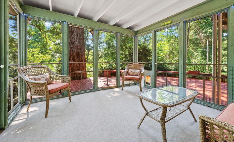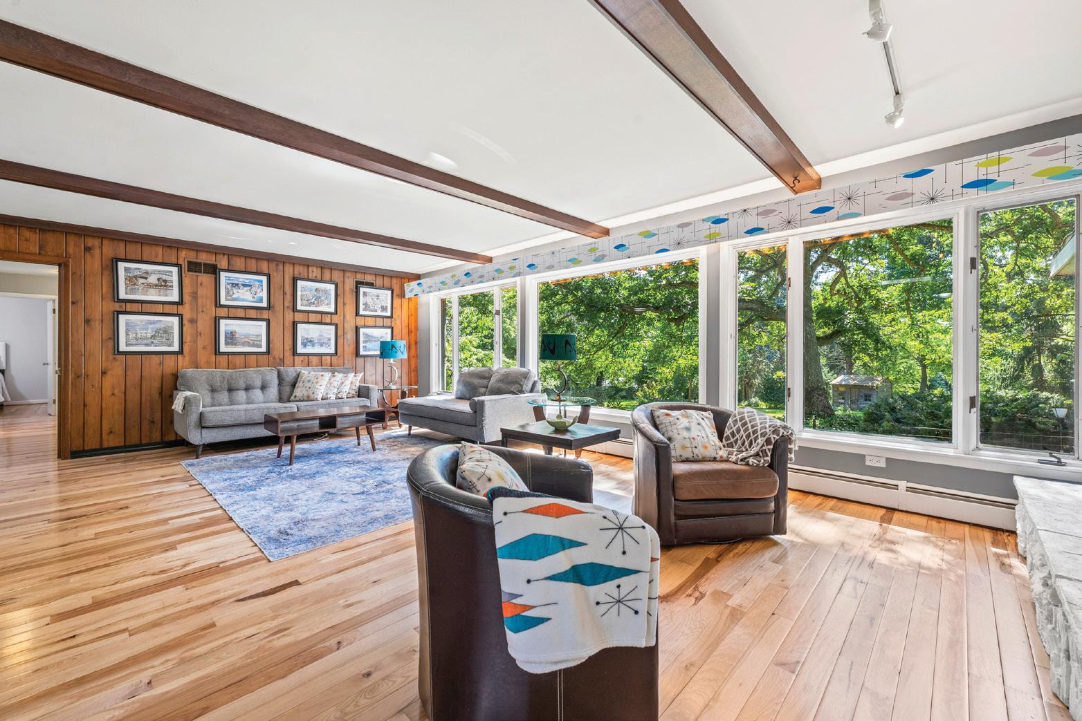 The only thing better than living in a two-acre arboretum like setting surrounded by 200-year-old oak trees is owning a Mid-Century Modern style home with really big windows to enjoy the view year around. The entire back of the home was designed with large windows to bring this experience inside. The home features screened porch, deck, and patio built solely for the enjoyment of this view. This is a one story hillside ranch that offers open floor plans, multiple outdoor living areas, and secluded spaces for privacy. As you step inside the home, you will immediately notice the windows surrounding the main living space. Lots of them, all with spectacular views of the property. The contemporary kitchen features custom cherry cabinetry, lots of granite counterspace, stainless-steel appliances, big windows and skylight to bring in natural light. Open to the dining area, this part of the home is perfect for entertaining while preparing your favorite meal for friends and family. The living room offers windows across one entire wall. A 2-sided stone fireplace rests between the living room and family area. The family area leads to the screened porch and deck. Picture yourself on the deck, minding the grill, drink in hand, listening to your favorite music at the end of a long week.
