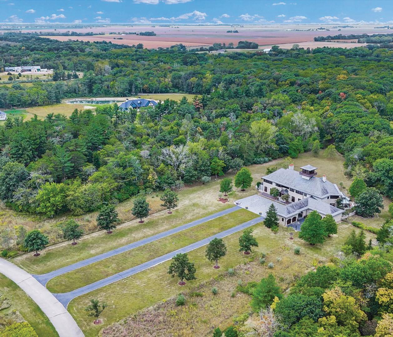 Experience the distinctive charm of this English Manor-an extraordinary architectural gem that flawlessly unites classic sophistication with exquisite attention to detail. Set on 52 breathtaking acres, this one-of-a-kind estate offers a harmonious balance of sophistication and serenity in a setting that simply cannot be replicated at this price. Nestled in a secluded, park-like environment just an hour and a half north of Chicago, the property feels like a European escape without ever leaving the Midwest. From the moment you enter, the attention to detail is apparent. The interior boasts eight exquisite French limestone fireplaces, each a replica of those found in historic French chateaux and installed by master stone carvers from France and England. Beamed ceilings imported from England and hand-laid limestone and wood floors from France infuse the home with warmth and Old World charm. A team of dedicated European artisans ensured that every finish reflects a commitment to quality and authenticity. The home’s structural integrity matches its aesthetic beauty. Built with 12-inch reinforced concrete blocks and 6-inch insulated interior walls, the estate offers exceptional durability and energy efficiency. Radiant heated floors span the entire home, laid over both poured and precast concrete for long-lasting comfort. The exterior and select interiors feature stunning Indiana limestone, while a roof of imported French clay tiles adds to the manor’s timeless character. A partially finished walkout basement spans over 7,800 square feet and includes three potential bedrooms, multiple bathrooms (including one finished half-bath), a kitchen, living room, garage, laundry room, and a wine cellaroffering incredible potential for customization.