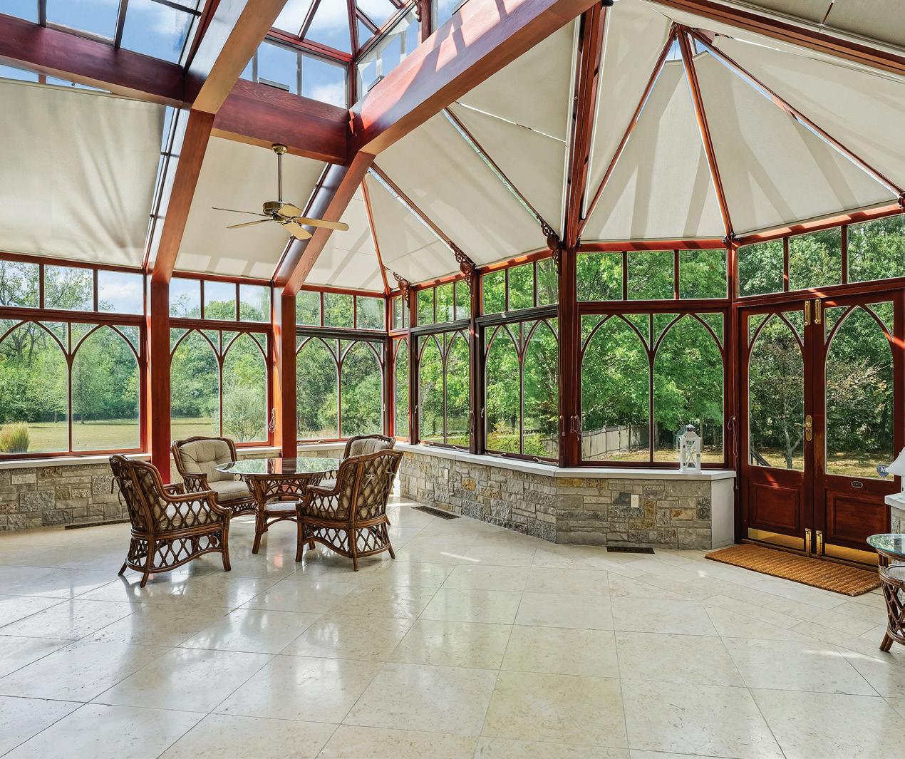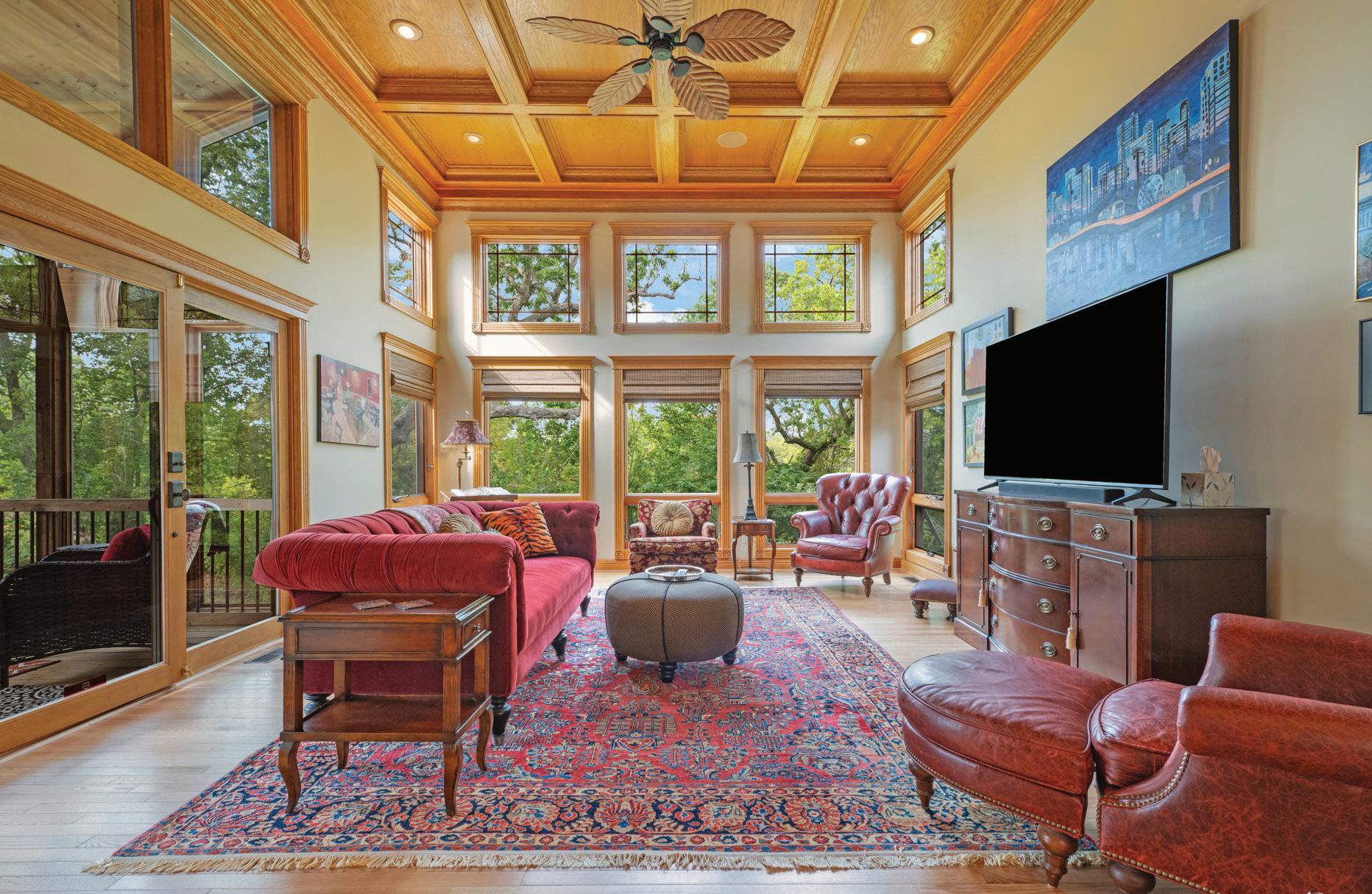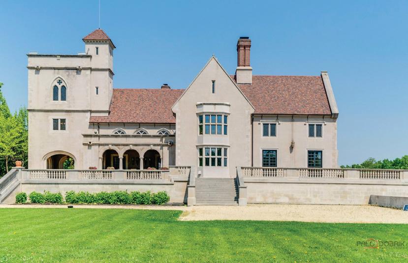 Introducing The Hidden River Estate, a generational estate of timeless craftsmanship and enduring design. Inspired by classic English country manors and enhanced by Frank Lloyd Wright architectural principles, this extraordinary residence rests on just under 26 private acres north of Mahomet, with frontage along the Sangamon River and adjacency to the Heron View Forest Preserve. Constructed of quarry stone, limestone, slate, and copper, every material was chosen for permanence and integrity. Inside, natural finishes of marble, granite, Jerusalem stone, and solid hardwoods pair with intricate millwork and custom-built furnishings. The home spans over 18,000 square feet across multiple levels, each connected by an elevator and designed for both elegance and function. The main level centers around a soaring Great Room framed by stone and light, flowing into the chef’s kitchen equipped with SubZero, Thermador, and Miele appliances. A handcrafted English conservatory, imported from England, serves as a year-round retreat with panoramic woodland views. Each bedroom features a private en suite bath, while the primary suite offers dual walk-in closets, a spa-inspired bath, and balcony access. The tower observatory, accessed by 54 steps, reveals 360 treetop and river views. Every element of the property was engineered to commercial-grade standards, including redundant systems, geothermal HVAC, multiple wells, lift pumps, a full-house generator, and professionalgrade service access throughout. The lower level includes a fitness area, sauna, with abundant storage and flex space. Outdoor amenities include five-car garage capacity, a slate roof, and multiple balconies overlooking manicured lawns and mature trees. Hidden River represents the rare combination of enduring construction, thoughtful design, and natural beauty, a timeless, generational home built to last for centuries.