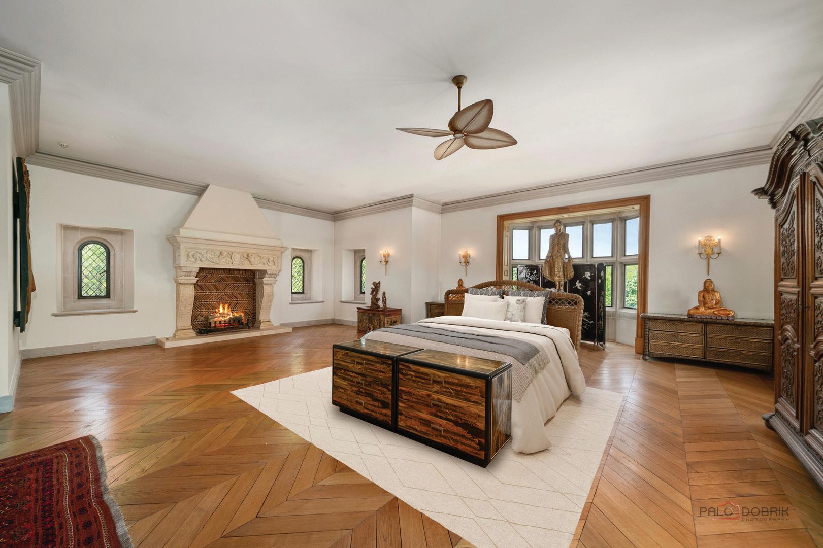 Nestled on the prestigious North Park Avenue, Significant Mansion stands as a remarkable architectural gem in the vibrant Old Town/Gold Coast neighborhood. This custom-built residence, constructed from exquisite masonry brick and limestone, spans an impressive 8,000 square feet and occupies a generous double lot measuring 50 feet in width. The property boasts an expansive side yard and entrance, multiple balconies, and a covered rooftop deck, crowned by a magnificent turret tower that presents breathtaking panoramic views of the city skyline and the lush, tree-lined surroundings. Featuring seven bedrooms and five and a half bathrooms, this home is a testament to meticulous design and thoughtful attention to detail. Inside, the residence showcases soaring 12-foot ceilings, rich hardwood flooring, a coffered ceiling in the living room, elaborate crown moldings, and stately 8-foot doors. The ambiance is further enhanced by three elegant wood-burning fireplaces, a five-stop elevator, and a well-appointed gym on the top floor that overlooks an impressive professional indoor basketball court. The spacious chef’s kitchen is a culinary enthusiast’s dream, equipped with a Wolf range cooktop and custom copper hood, built-in Wolf convection ovens, a commercial Thermador refrigerator, and luxurious granite countertops.