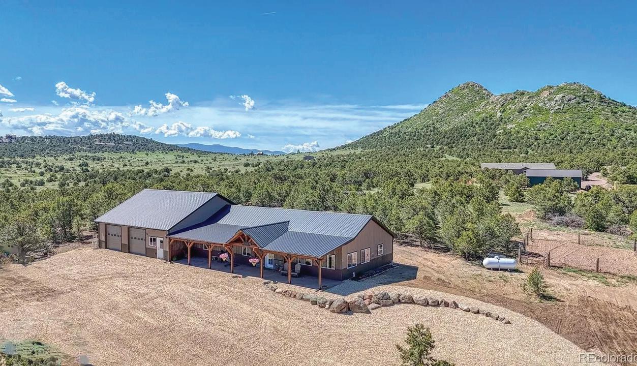 $839,000 | 5 BEDS | 3 BATHS | 3,361 SQFT Nestled on a peaceful 5-acre lot in the heart of the Black Forest, this beautiful home offers the perfect blend of modern comfort and rural tranquility. With sweeping mountain views and plenty of space to roam, this property is ideal for those seeking privacy and proximity to Colorado Springs and Denver. This 5-bedroom, 3-bathroom home offers over 3,300 sq. ft. of open, light-filled living space. The main floor features a large living room and a cozy wood fireplace with included pellet stove insert—perfect for relaxation or entertaining guests. The large office on the main level can also be an optional 6th bedroom/main level bedroom. The heart of the home, this chef’s kitchen is equipped with granite countertops, stainless steel appliances, and a generous center island, making meal prep and entertaining a breeze. The private primary suite boasts sweeping views, a walk-in closet, and a 3/4 bathroom complete with a large walk-in shower. The large backyard is fenced, offering the perfect spot for outdoor activities, gardening, or simply enjoying the stunning Colorado sunsets. A spacious deck and patio area provide ample space for al fresco dining and relaxation. The fully usable land has a mix of pasture and wooded areas. Three stall horse barn and arena are included. NOTE: several photos are “Virtually Staged.”