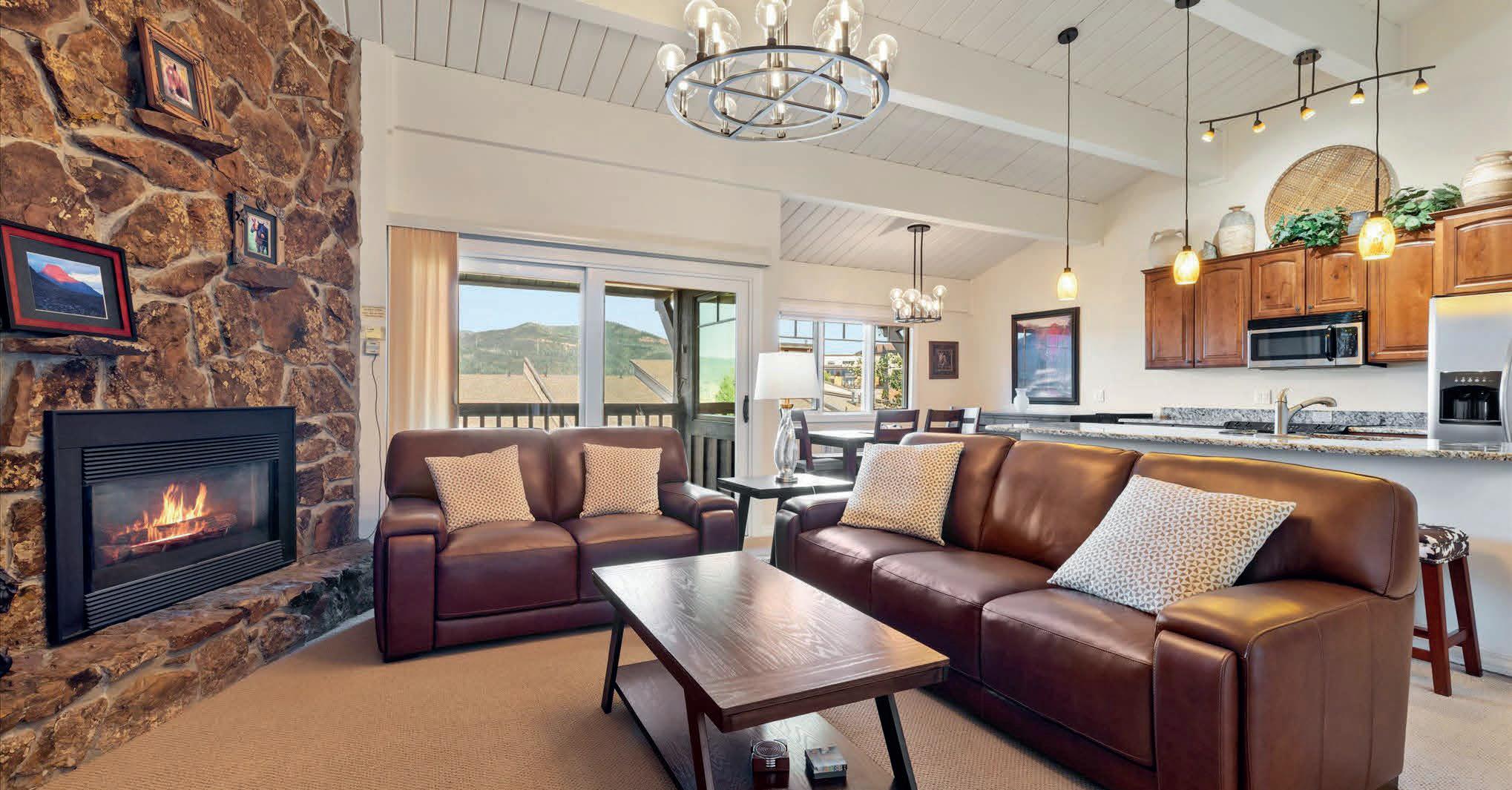 Residence 702 at One Steamboat Place offers luxury accommodations. Featuring a large living area and private deck that runs the entire length of the residence and overlooks the pool and open valley views before you. The open floor plan connects the living and dining areas to the kitchen with space for the entire group to gather.