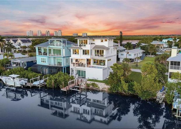 Boaters & Beach Lovers! Architecturally Stunning Home & Meticulously maintained! Breathtaking…. This is an exquisite and rare opportunity to own one of Barefoot Beaches limited waterfront properties with total privacy. This reimagined Florida Cupola-style home has been architecturally outfitted to stun. Located in the exclusive beachfront community of Southport @ Barefoot Beach and tucked away on a small cove this double gated, 24-hour secured property offers the epitome of luxury waterfront living.