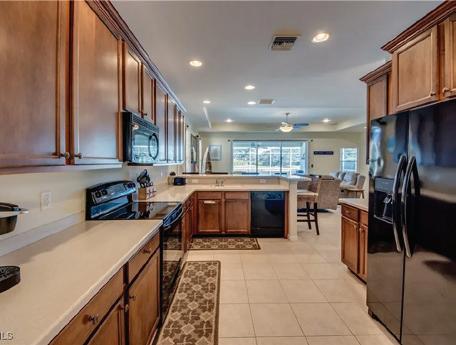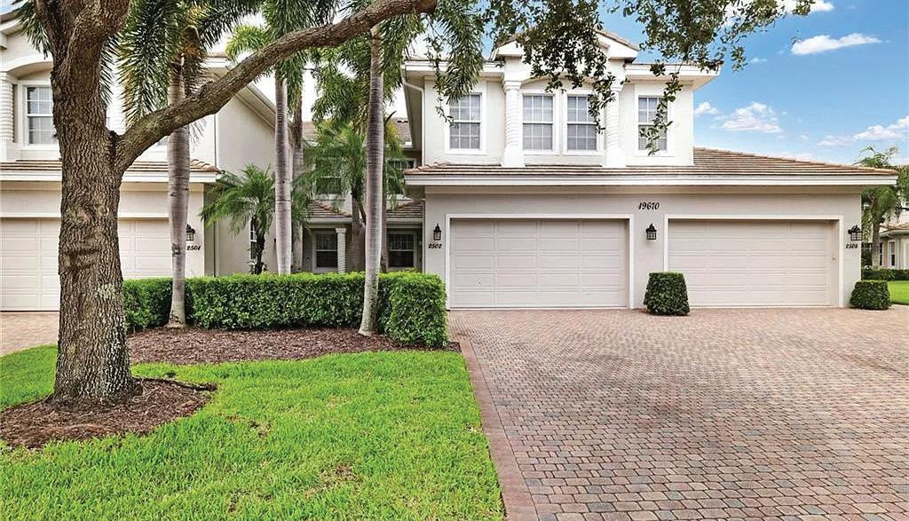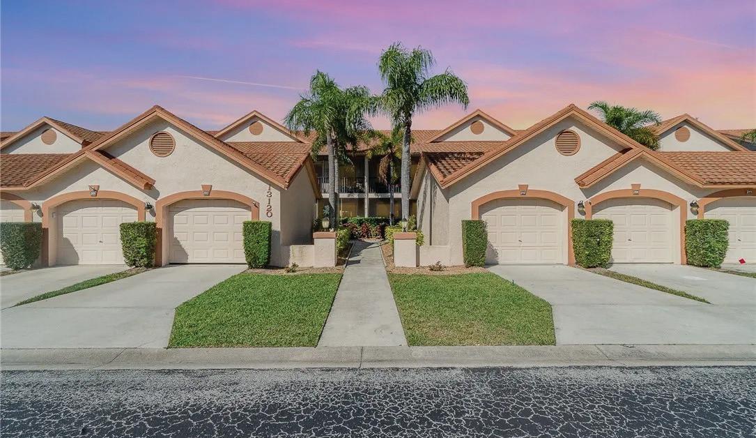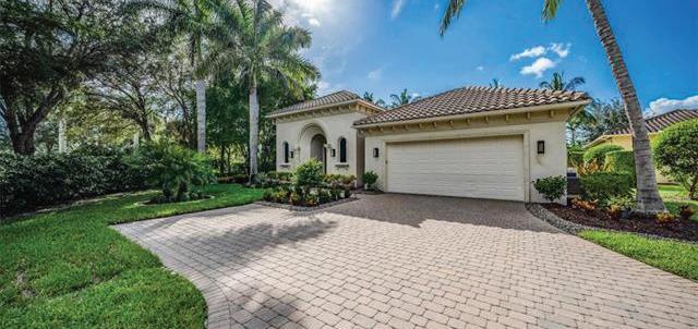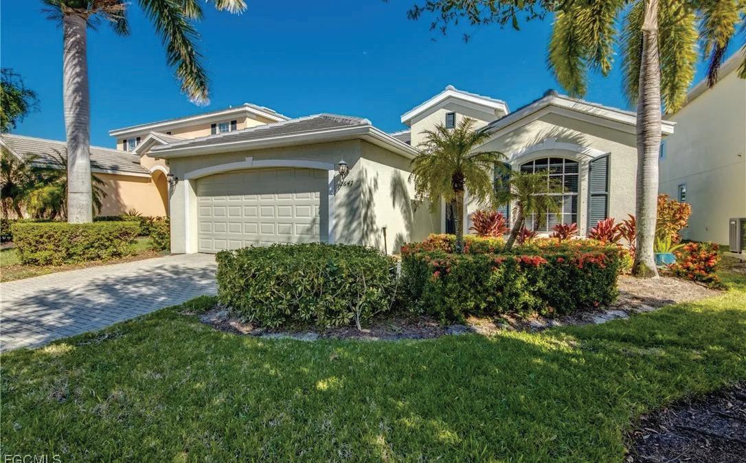 Welcome to this beautifully appointed coach home in the desirable gated community of San Marino at Miromar Lakes. This spacious first-floor residence offers 3 bedrooms, a dedicated office with custom built-ins, 2 bathrooms, and an open floor plan designed for both comfort and entertaining. The heart of the home is the light-filled great room, where large windows create a bright and airy ambiance. The kitchen features ample counter space, upgraded cabinetry, newer appliances, and a convenient breakfast bar that flows seamlessly into the dining and living areas. A screened lanai with northwest exposure provides a tranquil space to relax while enjoying peaceful lake views and stunning sunsets. SOLD FOR $525,000