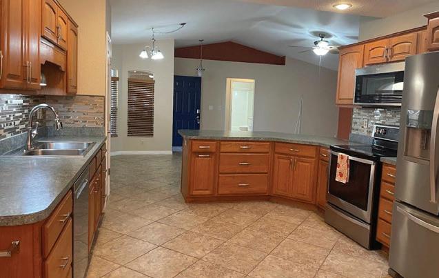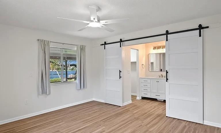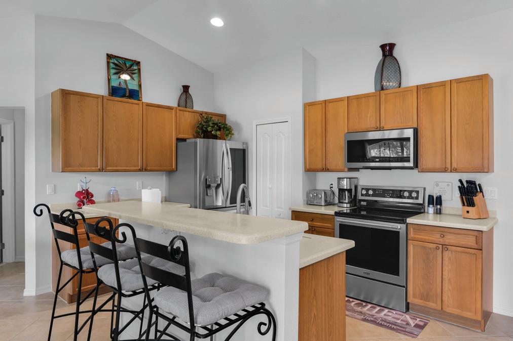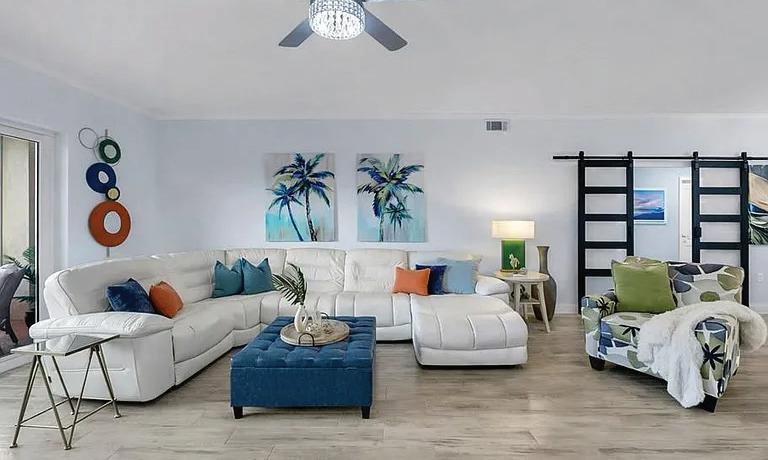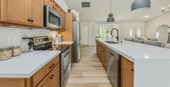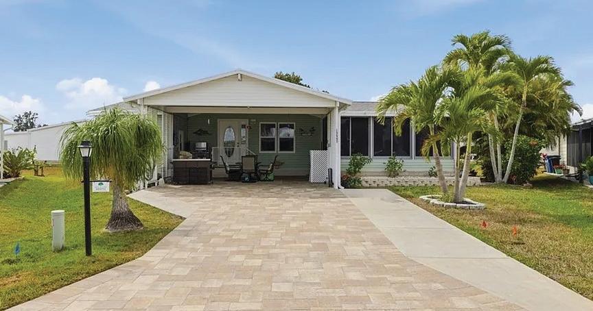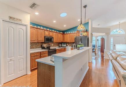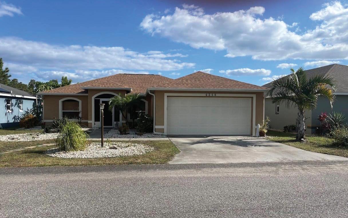 Beautifully updated and designed for easy living, this 3-bedroom home features a modern kitchen and baths, luxury vinyl plank flooring, and a split-bedroom layout for privacy. The spacious primary suite offers two walk-in closets, a spastyle shower, new vanities, and private pool access. Two guest bedrooms and bath complete the layout. The open kitchen flows into a large bonus room with stylish glass barn doors and impact sliders leading to a tropical pool oasis. Outdoor living includes a covered lanai with hurricane-impact screens and a custom pool with swim-up table and fountain. Additional features include a whole-house generator, lush landscaping, new pool pump (Dec 2025), and extensive upgrades. Quality built by Oyster Bay Homes, never rented, with transferable flood insurance and no history of water intrusion or hurricane damage.