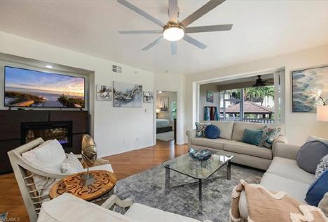 Perfectly Located in the Heart of Old Naples! Just five blocks from the beach and two blocks from the shops and restaurants of 3rd Street South—with an easy stroll to 5th Avenue South—this first-floor condo offers the ultimate in location and lifestyle. The open-concept floor plan is ideal for entertaining, with a screened lanai only steps from the pool and grill cabana. Impact-resistant doors and windows provide peace of mind, eliminating the need for storm shutters. Your spacious one-car garage is conveniently close by. This residence has remained high and dry through recent storms, with no damage or water intrusion. Inside, you’ll find beautiful bamboo flooring throughout, and the home comes turnkey furnished for immediate enjoyment. The updated primary bath features a large walk-in shower and a bidet. Come experience the charm of Old Naples—one of the most desirable communities in the country. This is more than a home; it’s a lifestyle in paradise.