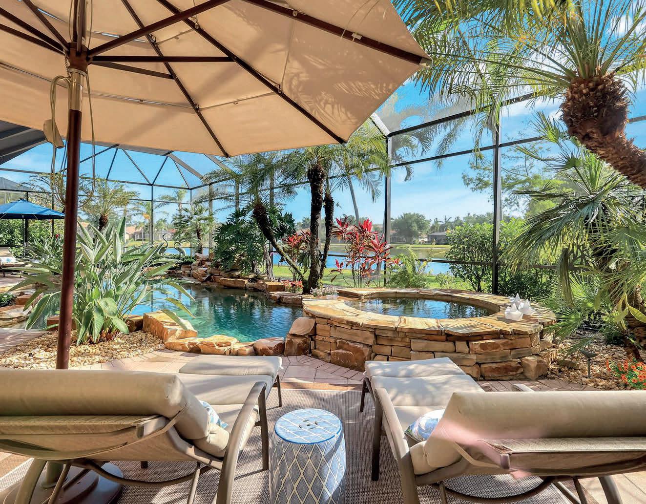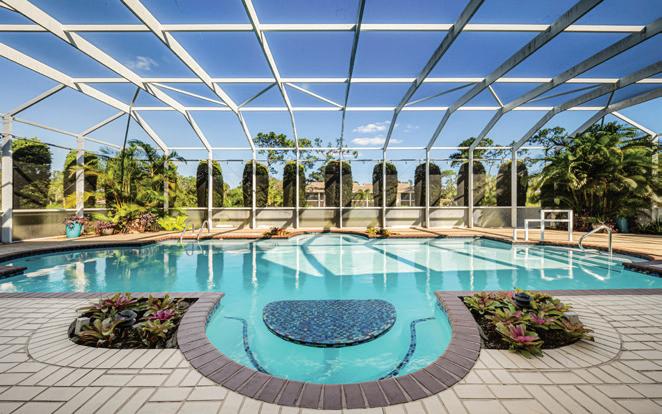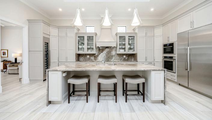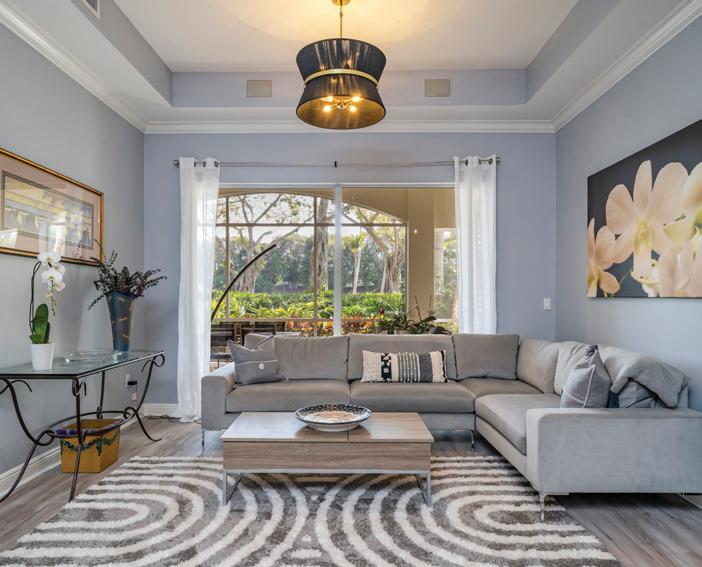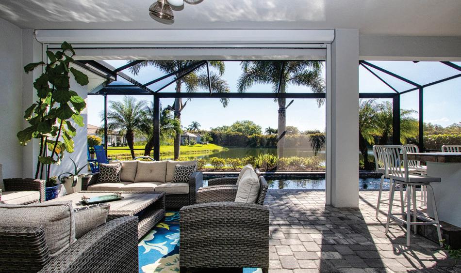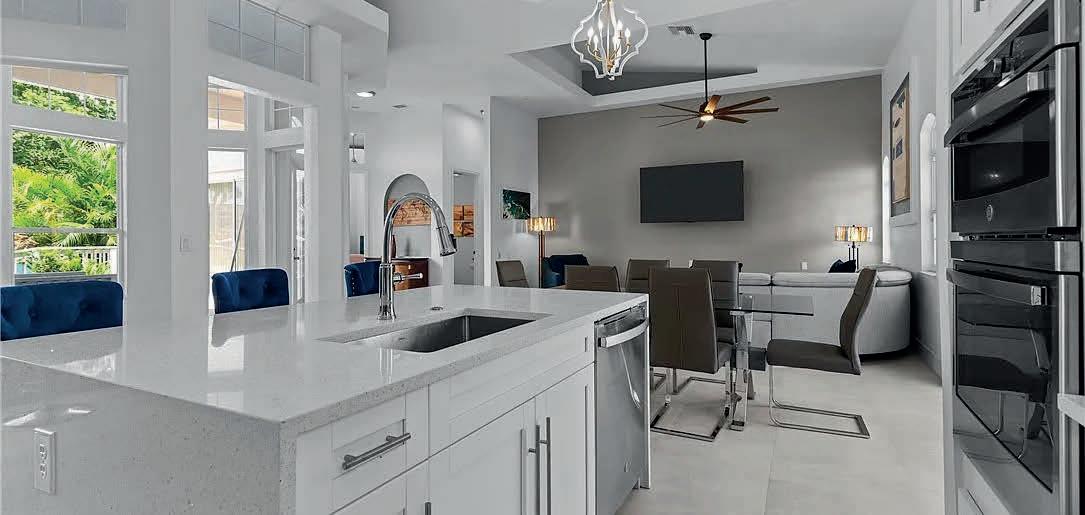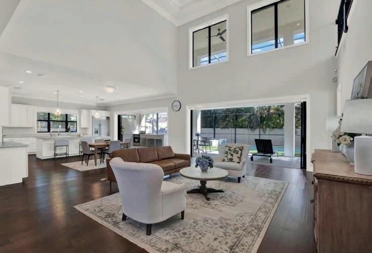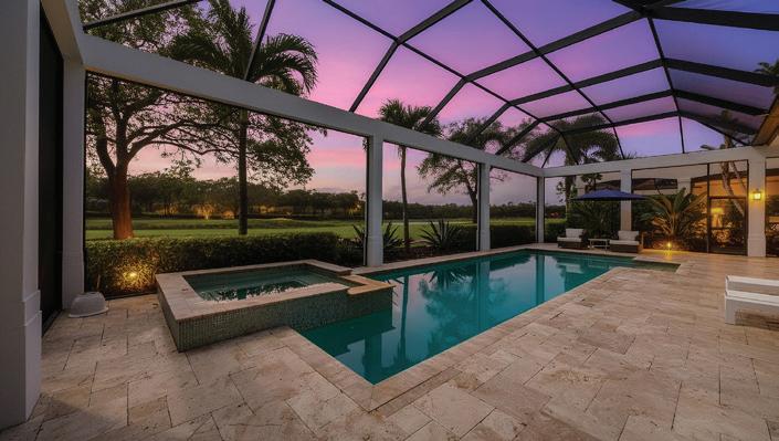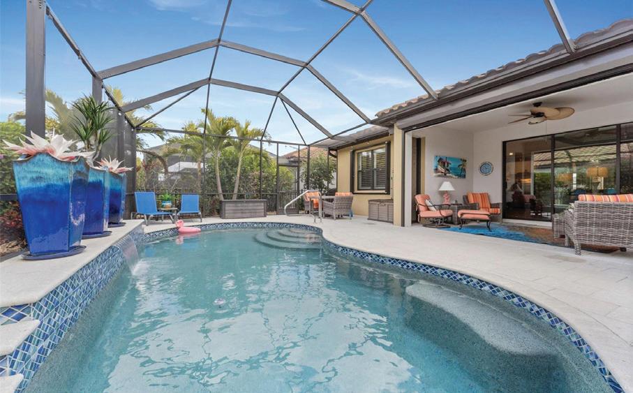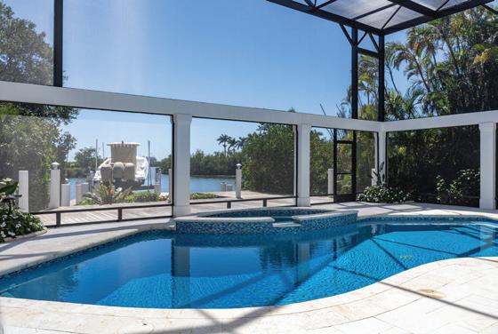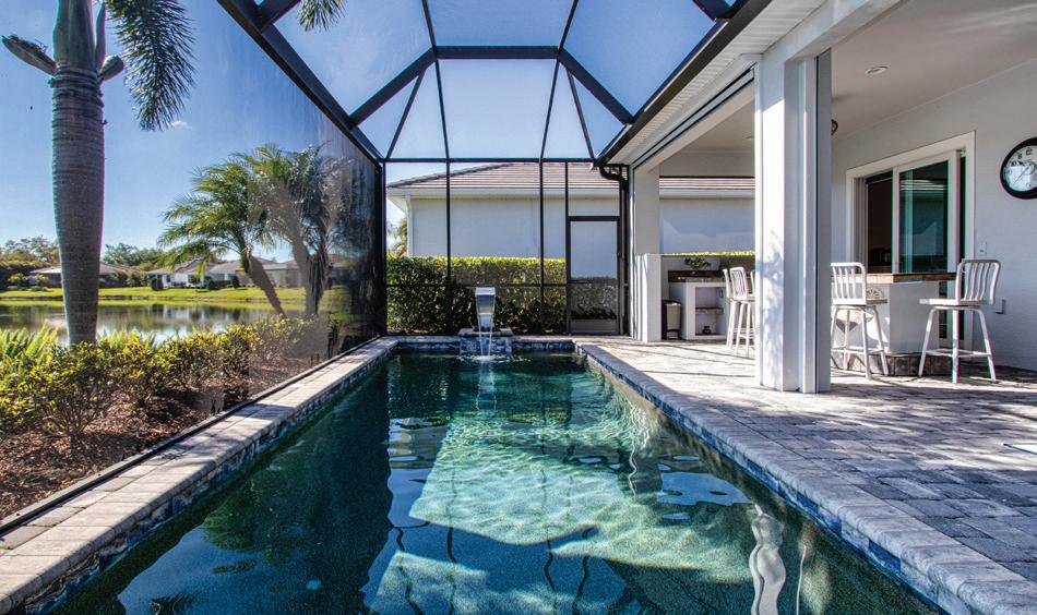 One-of-a-kind custom-built residence by BCB Homes in the highly desirable neighborhood of Park Shore. The crown jewel is the stunning Swan Lake view, enjoyed through 20 feet of pocketing sliding doors connecting the kitchen and great room to the expansive outdoor area. The screened lanai extends the interior with a gas fireplace and tongueand-groove ceiling. The covered patio overlooks a 37-foot lap pool with a travertine sun deck, creating a serene setting with sparkling lake views. Living in Park Shore means enjoying one of Naples’ most desirable coastal lifestyles by having private access to Park Shore Beach Park, a pristine stretch of Gulf shoreline with shaded pavilions, walking paths, restrooms, and uncrowded white-sand beaches. Venetian Village, a nearby waterfront destination, offers boutique shopping and dining overlooking the bay.