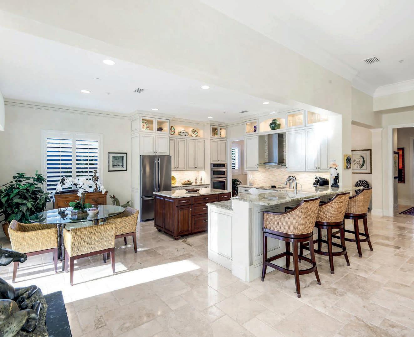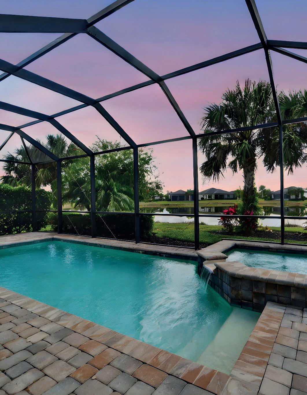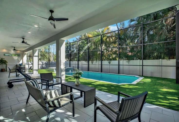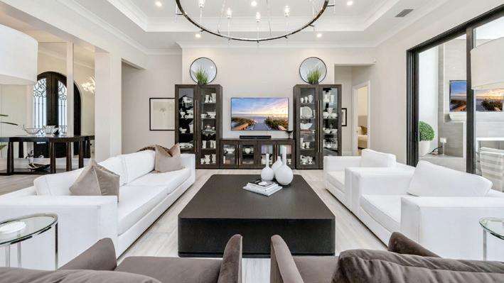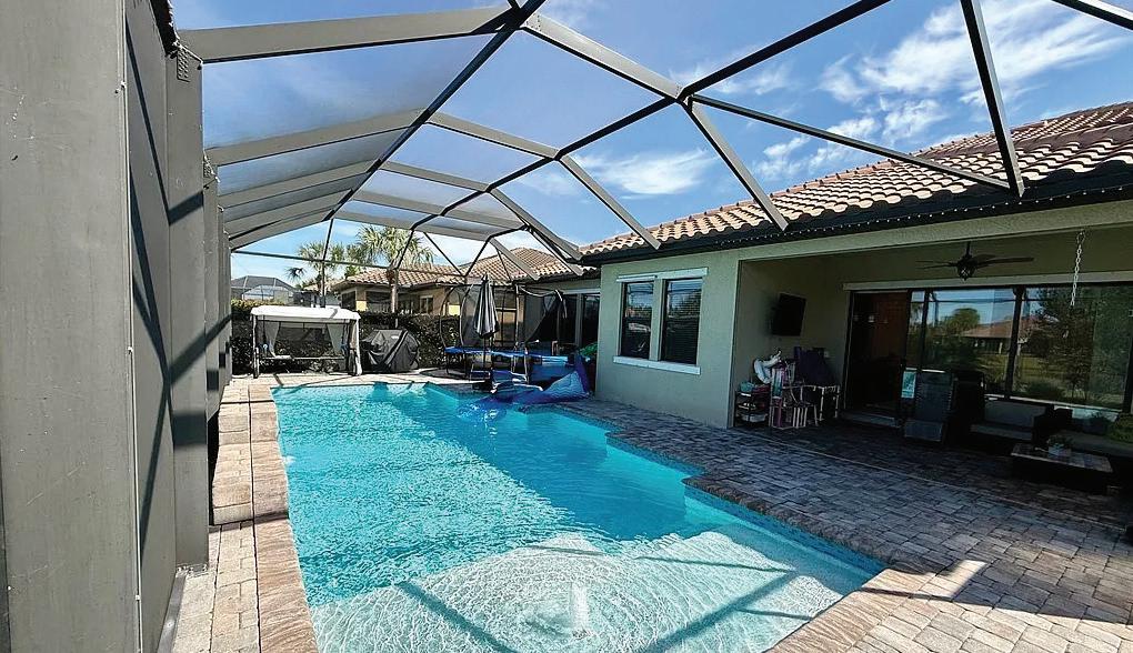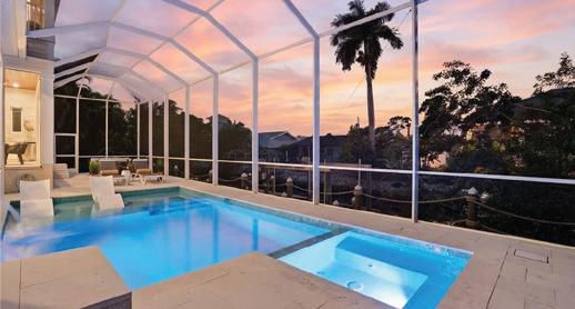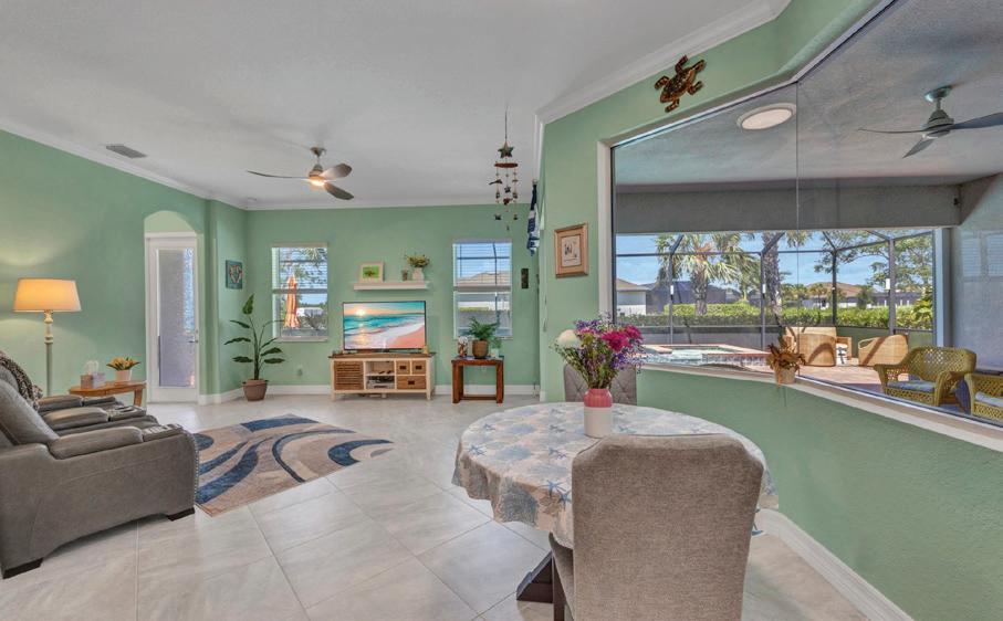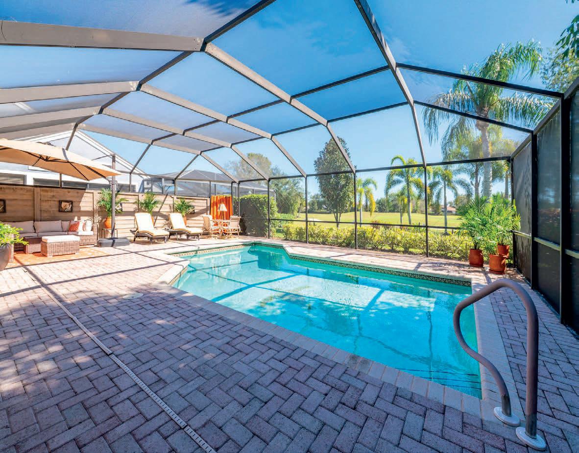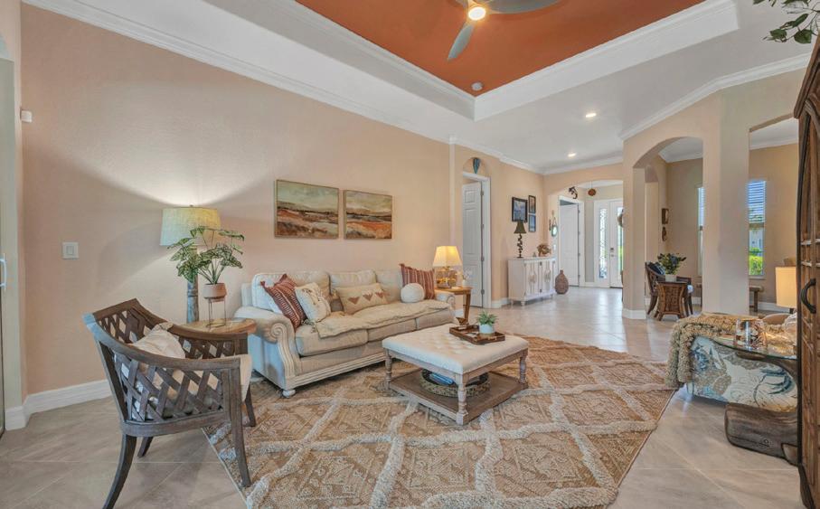 One-of-a-kind custom-built residence by BCB Homes in the highly desirable neighborhood of Park Shore. The crown jewel is the stunning Swan Lake view, enjoyed through 20 feet of pocketing sliding doors connecting the kitchen and great room to the expansive outdoor area. The screened lanai extends the interior with a gas fireplace and tongueand-groove ceiling. The covered patio overlooks a 37-foot lap pool with a travertine sun deck, creating a serene setting with sparkling lake views. Living in Park Shore means enjoying one of Naples’ most desirable coastal lifestyles by having private access to Park Shore Beach Park, a pristine stretch of Gulf shoreline with shaded pavilions, walking paths, restrooms, and uncrowded white-sand beaches. Venetian Village, a nearby waterfront destination, offers boutique shopping and dining overlooking the bay.