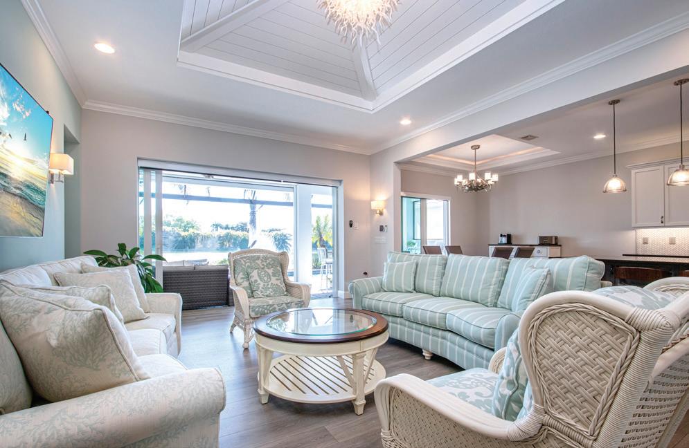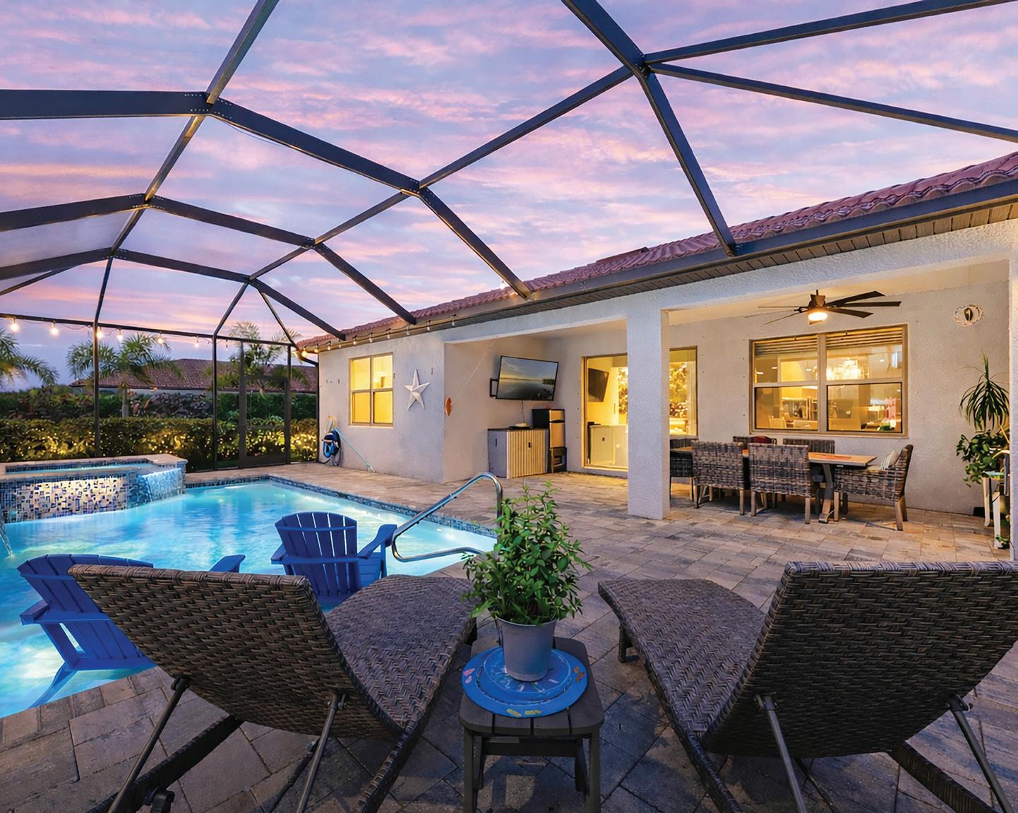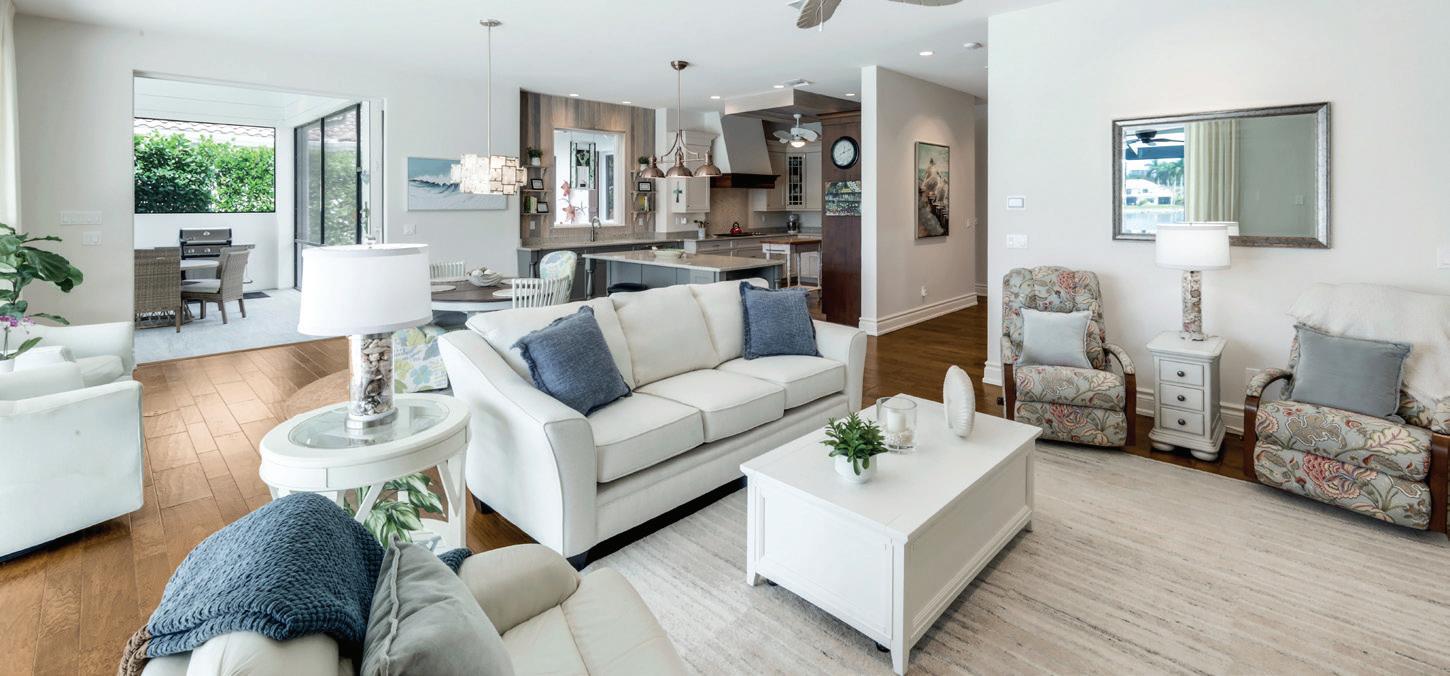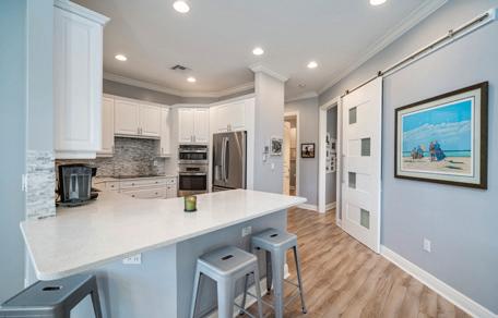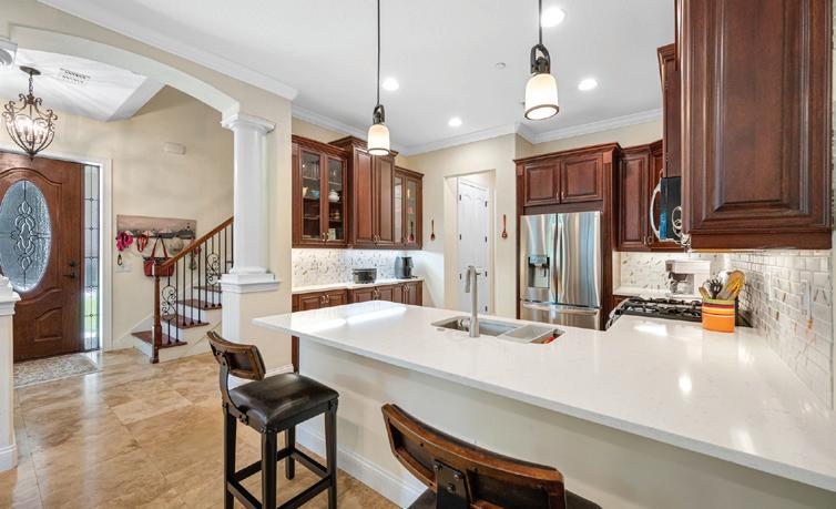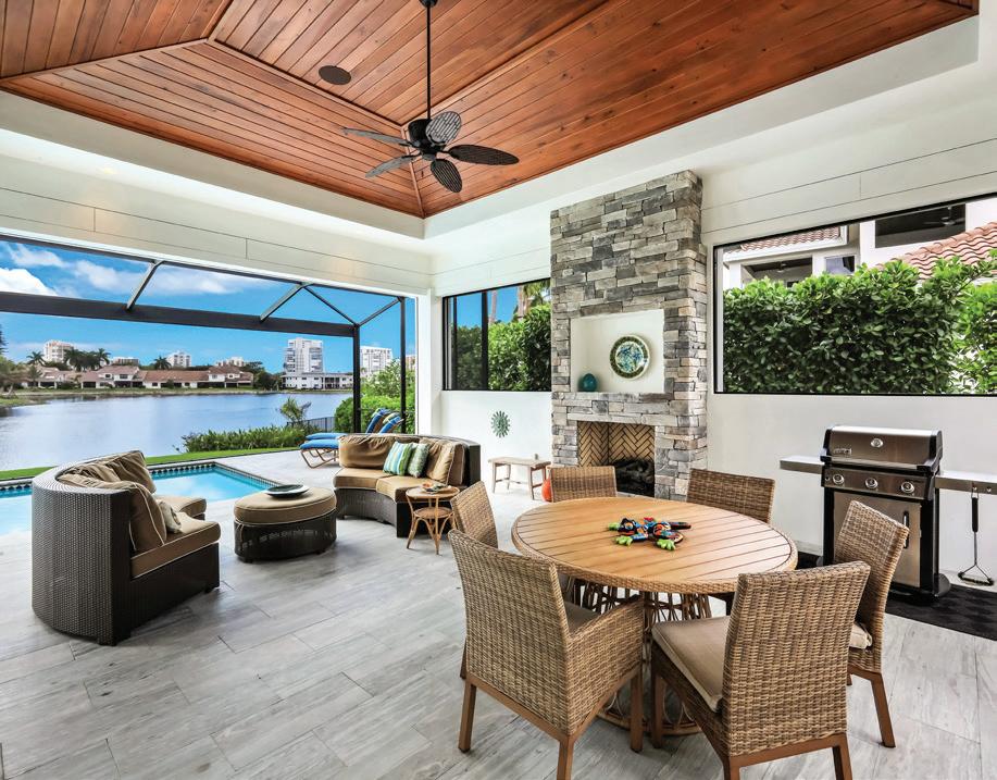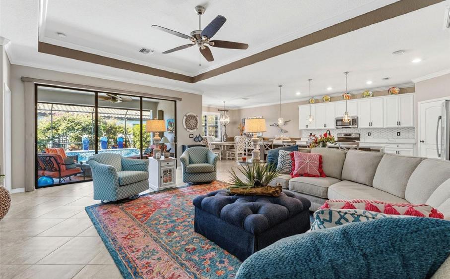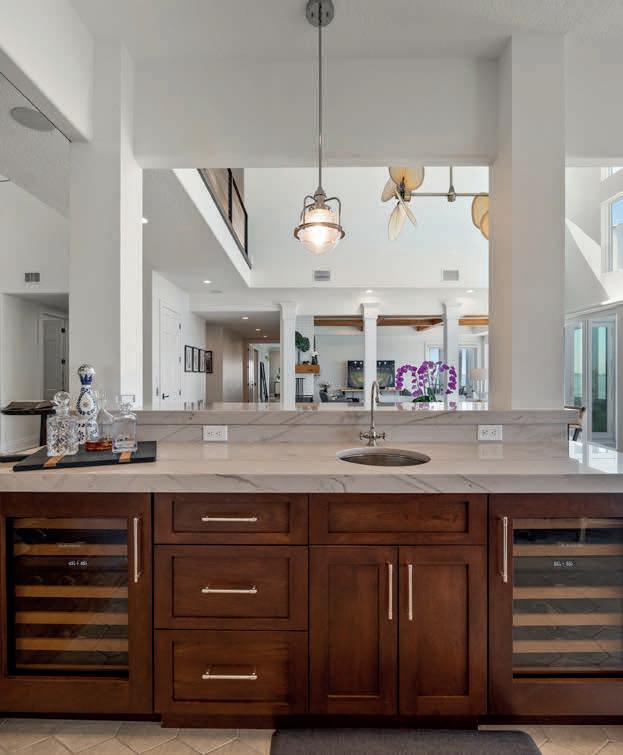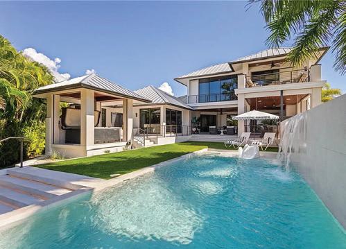 One-of-a-kind custom-built residence by BCB Homes in the highly desirable neighborhood of Park Shore. The crown jewel is the stunning Swan Lake view, enjoyed through 20 feet of pocketing sliding doors connecting the kitchen and great room to the expansive outdoor area. The screened lanai extends the interior with a gas fireplace and tongueand-groove ceiling. The covered patio overlooks a 37-foot lap pool with a travertine sun deck, creating a serene setting with sparkling lake views. Living in Park Shore means enjoying one of Naples’ most desirable coastal lifestyles by having private access to Park Shore Beach Park, a pristine stretch of Gulf shoreline with shaded pavilions, walking paths, restrooms, and uncrowded white-sand beaches. Venetian Village, a nearby waterfront destination, offers boutique shopping and dining overlooking the bay.