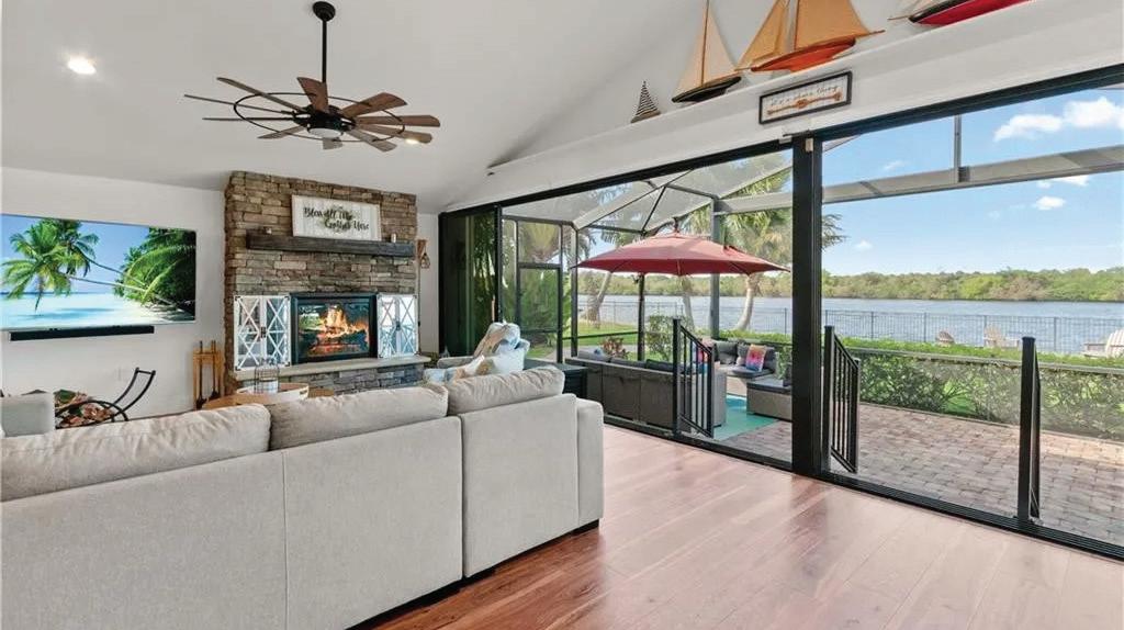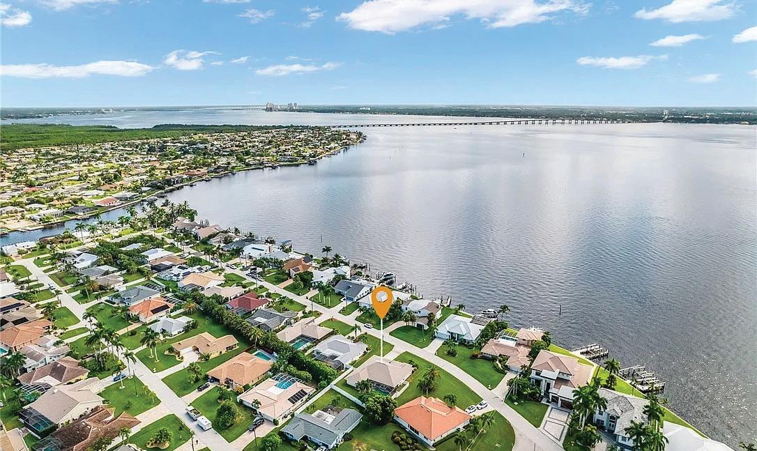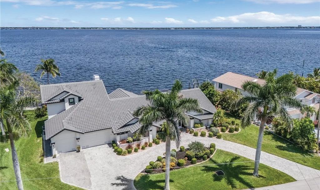 Discover premier riverfront living on nearly ½-acre of waterfront in Cape Coral’s coveted area. This meticulously remodeled 5-bedroom, 4.5-bath home offers expansive living spaces with stunning river views from every angle. The upstairs master suite boasts a private balcony, large walk-in closet, and spa-style bath. Entertain in the cook’s dream kitchen featuring custom cabinetry, a striking copper farmhouse sink, walk-in pantry, and breakfast bar opening to a welcoming gathering room with a wood-burning fireplace. Outdoor living shines with a resurfaced pool and flagstone deck, all overlooking your private river oasis with a concrete captain’s walk—perfect for your largest watercraft. Additional highlights include a 3-car garage, recent mechanical updates, hurricane protection, and beautiful landscaping. This exceptional riverfront retreat blends luxury, comfort, and Florida lifestyle living.