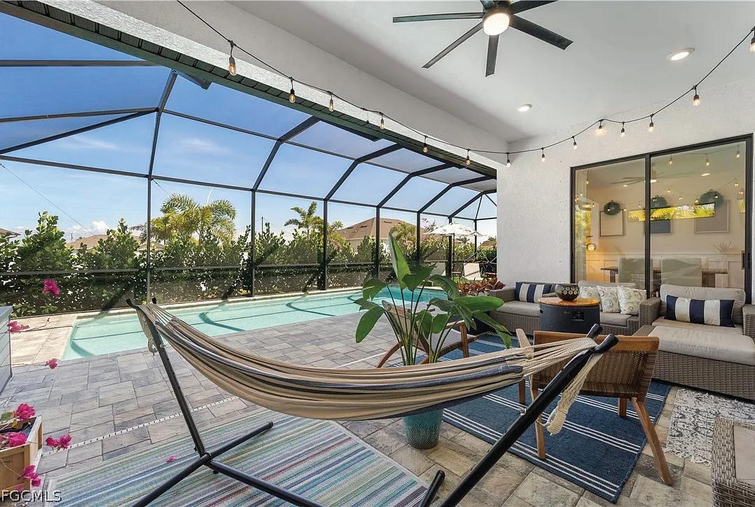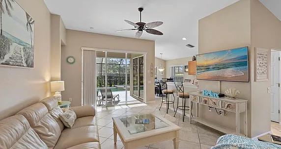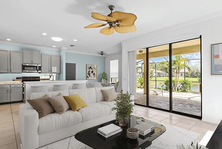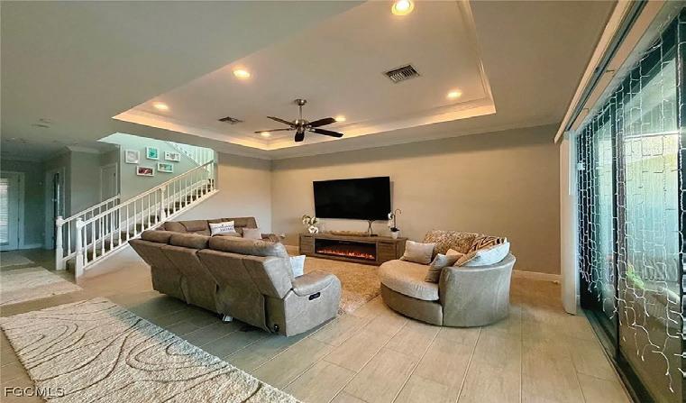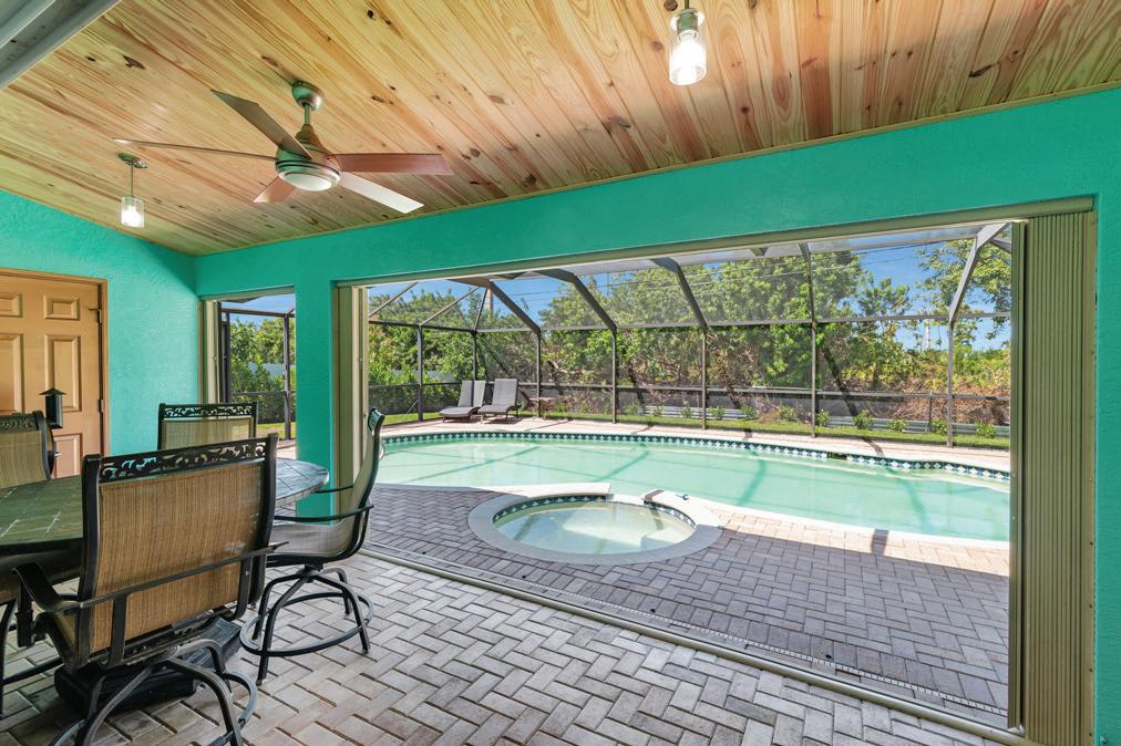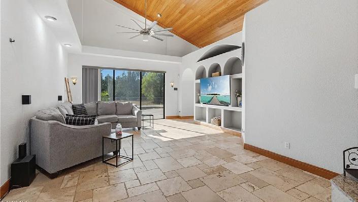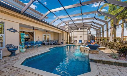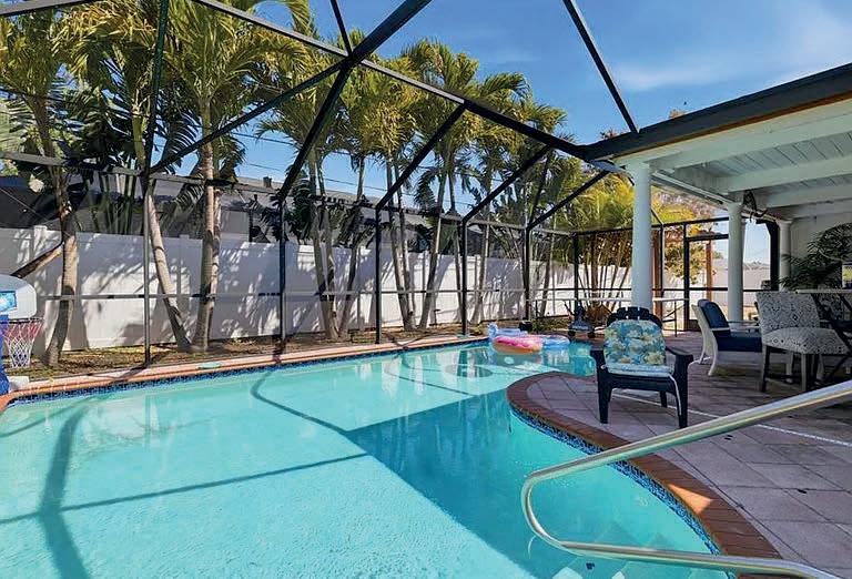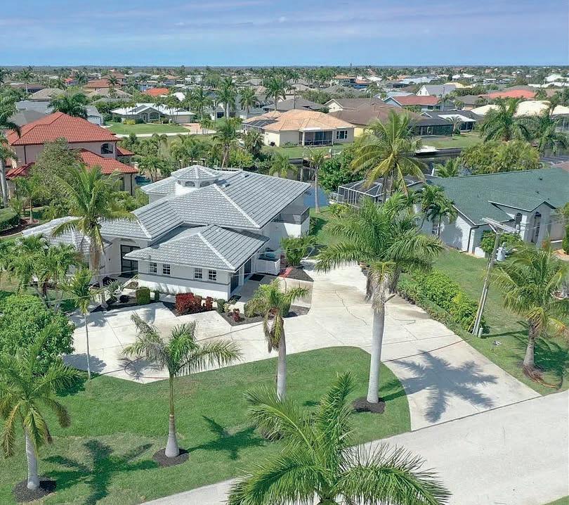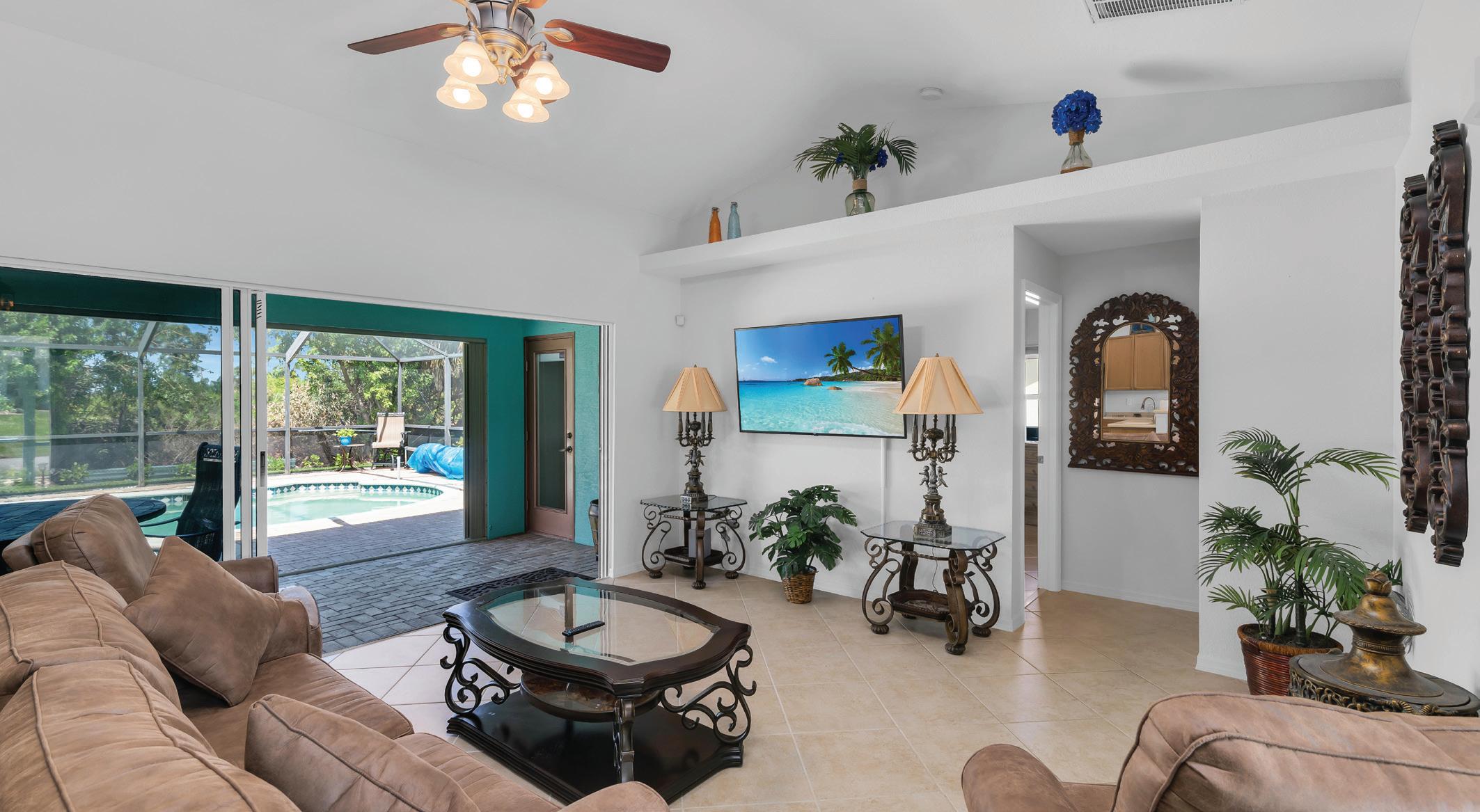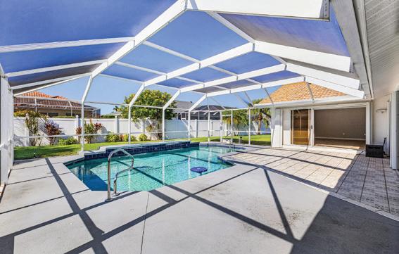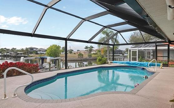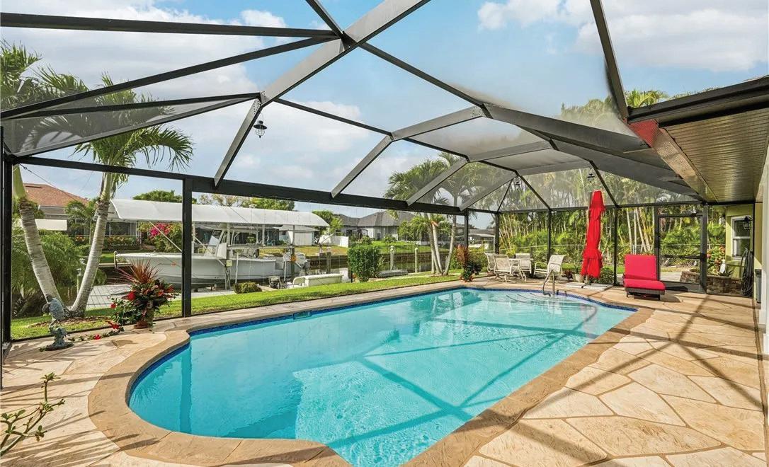Direct Gulf Access Home with no bridges to maneuver to the Caloosahatchie River and Intercoastal waters. 4 bedrooms plus office/den with open concept and volume ceilings throughout. Heated pool with ample under truss patio and screened in pool area to enjoy year round. Tile floors in all common areas, granite counters in kitchen/dining area, double door front entry and oversized 2 car garage. Great neighborhood with walking/ biking paths to Riverfront Horton Park. Easy access to Veterans Memorial Pkwy to Ft Myers or Pine Island and the Eco Park which is easily accessed by biking, kayak or boat. The home is being sold fully furnished. Just bring your beach clothes and enjoy the epitone of Florida living. Upgrades: New tile roof 2023, newer A/C, pool heater, pool pump, hot water heater, all outside lighter, exterior painted 2025. Electric shutters to protect patio and sliders to lanai, full home hurricane shutters.