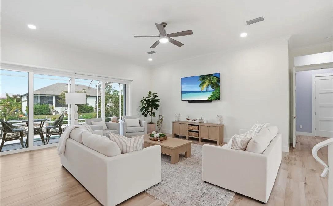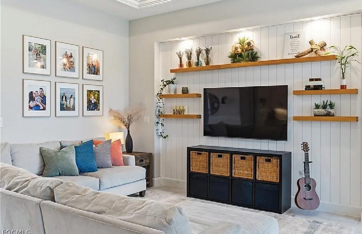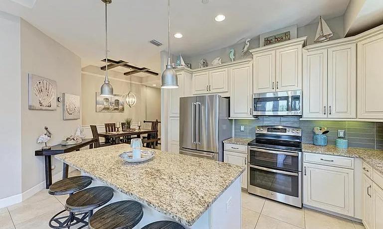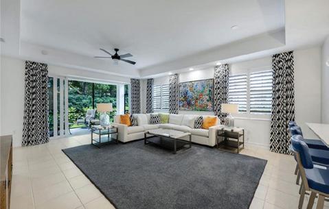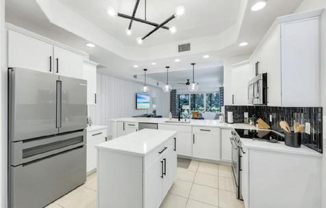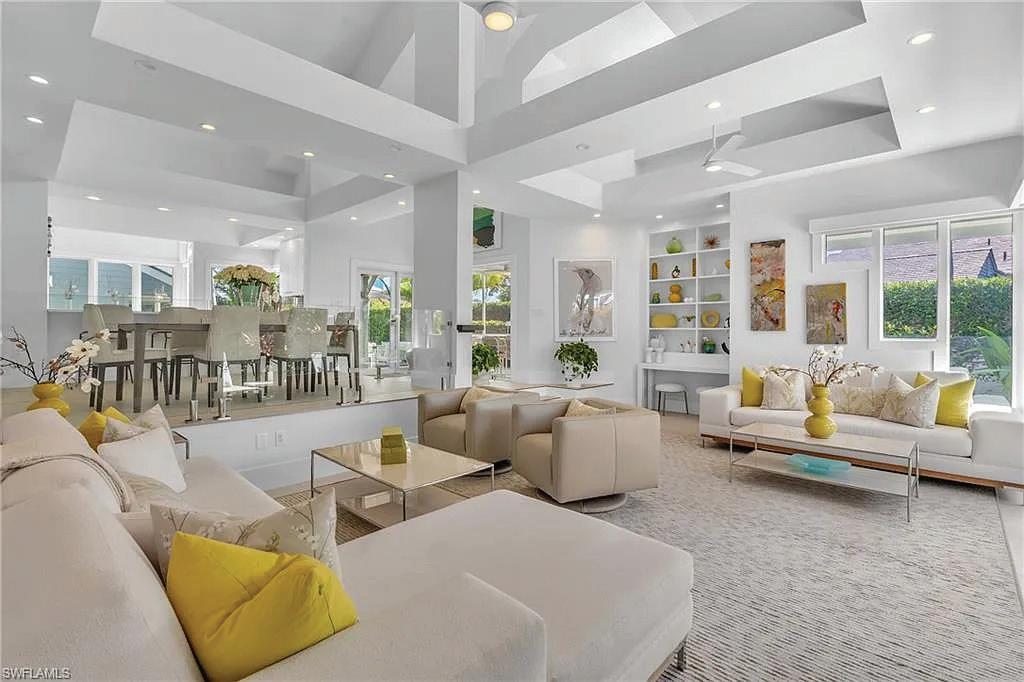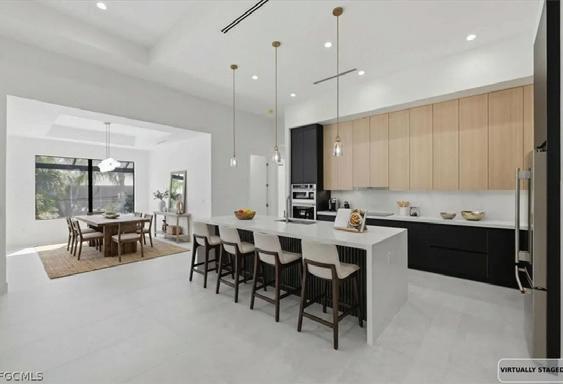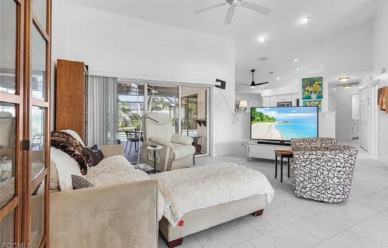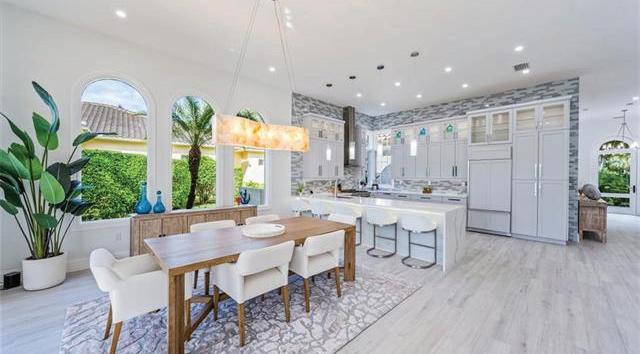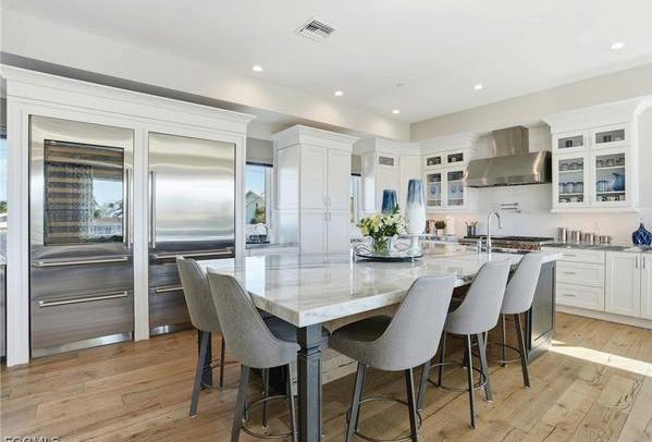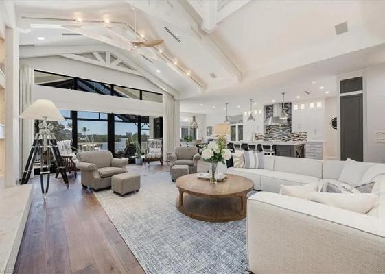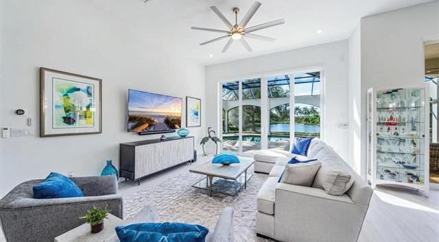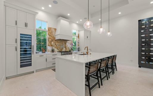 SKIP THE WAITLIST for the MEMBERS CLUB AT MARCO, providing exclusive access to The ROOKERY GOLF CLUB, HAMMOCK BAY GOLF CLUB, and MARRIOTT BEACH CLUB on Marco Island! This exceptional property is one of only ten homes in the highly coveted village of Sauvignon, offering unparalleled privacy on nearly three-quarters of an acre with a long, secluded driveway. Completely renovated in 20222023, this home exudes modern elegance and thoughtful design. The interiors were transformed with soaring 12-foot ceilings, open-concept spaces, and new tile flooring throughout. The greatly expanded chef’s kitchen is equipped with custom cabinetry, a six-burner gas range, quartz countertops with glass tile backsplash that extends from floor to ceiling. The entertainment area features a custom driftwood bar, custom cabinets, quartz countertops, a wine cooler, and a television.