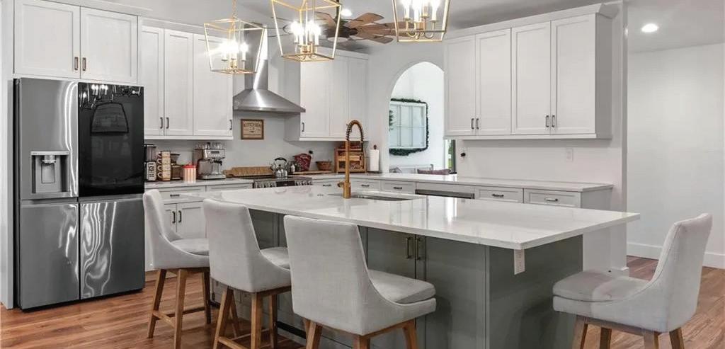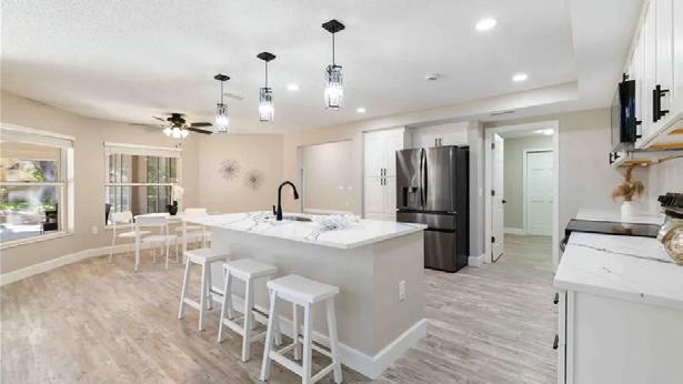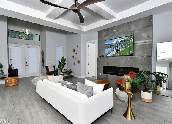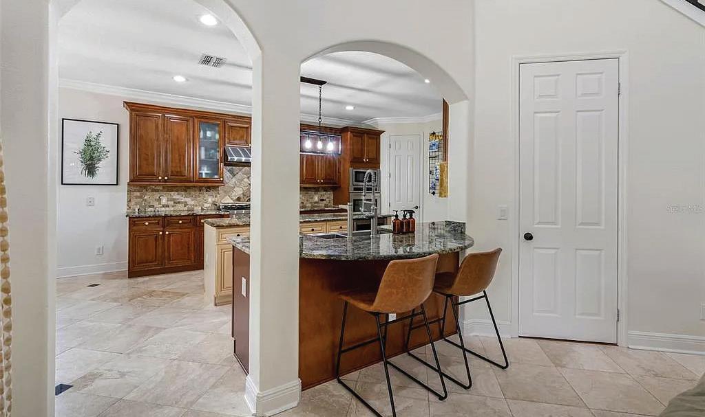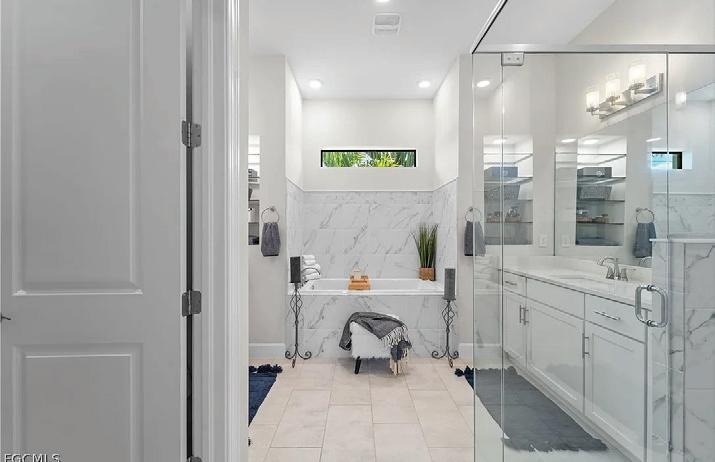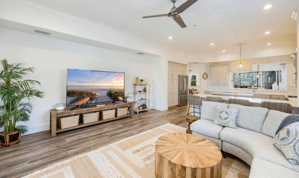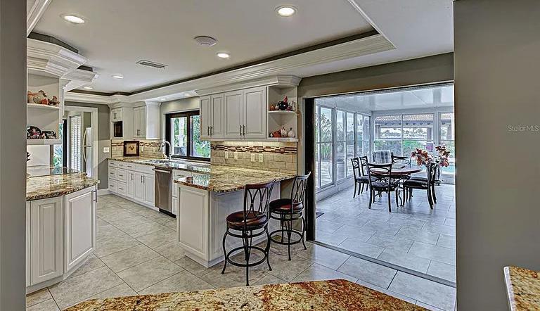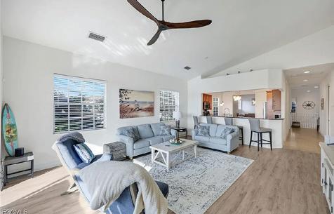 SKIP THE WAITLIST for the MEMBERS CLUB AT MARCO, providing exclusive access to The ROOKERY GOLF CLUB, HAMMOCK BAY GOLF CLUB, and MARRIOTT BEACH CLUB on Marco Island! This exceptional property is one of only ten homes in the highly coveted village of Sauvignon, offering unparalleled privacy on nearly three-quarters of an acre with a long, secluded driveway. Completely renovated in 20222023, this home exudes modern elegance and thoughtful design. The interiors were transformed with soaring 12-foot ceilings, open-concept spaces, and new tile flooring throughout. The greatly expanded chef’s kitchen is equipped with custom cabinetry, a six-burner gas range, quartz countertops with glass tile backsplash that extends from floor to ceiling. The entertainment area features a custom driftwood bar, custom cabinets, quartz countertops, a wine cooler, and a television.