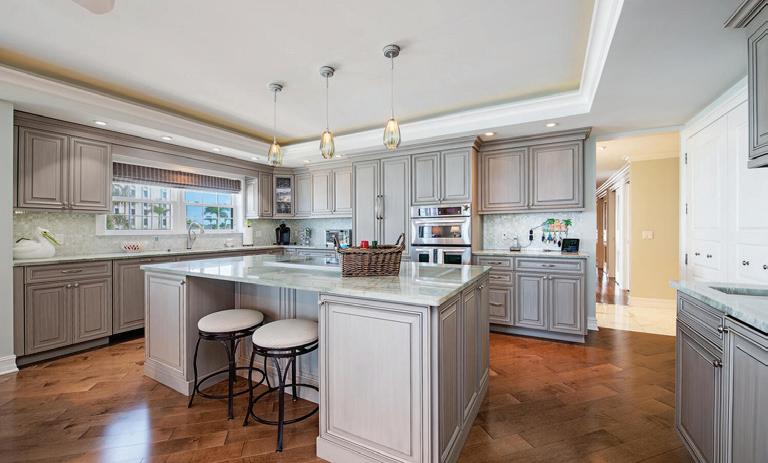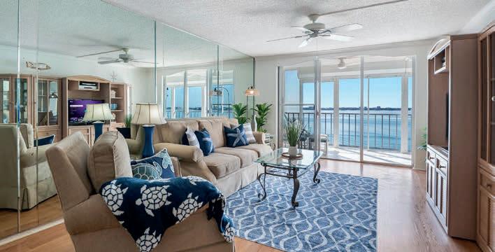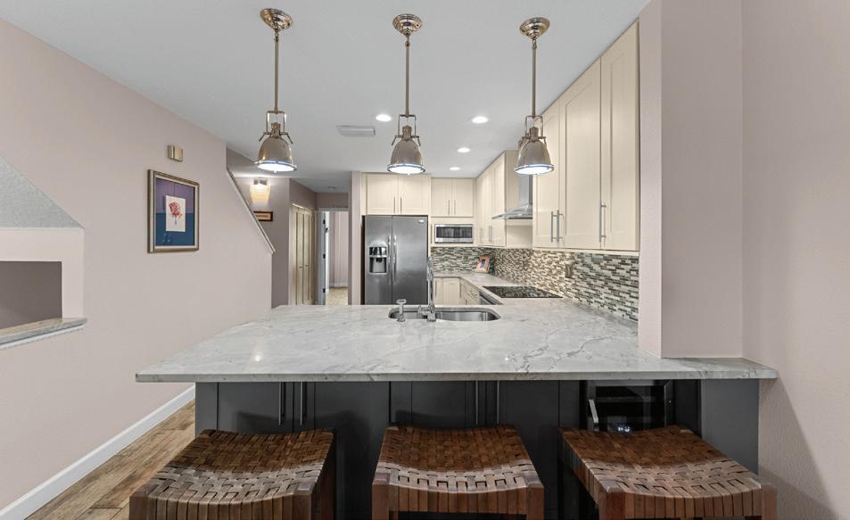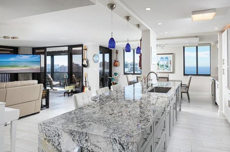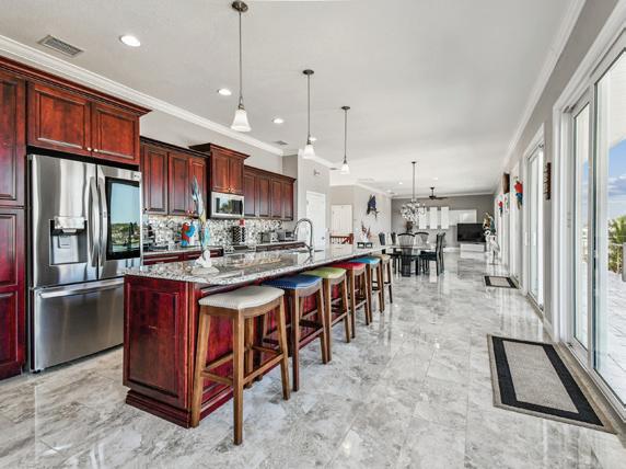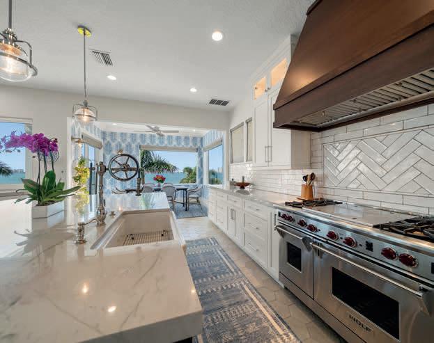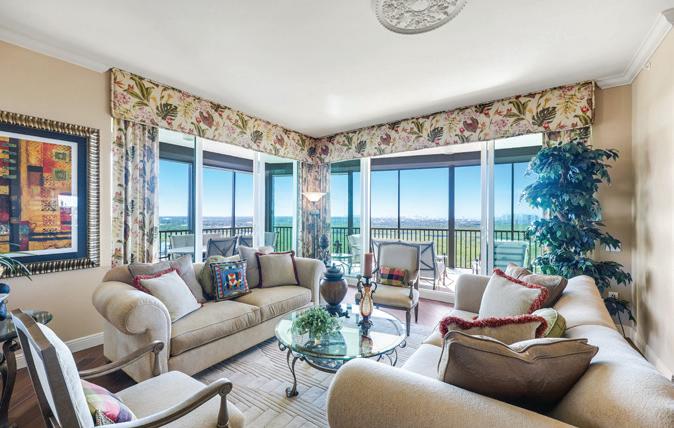 Breathtaking Gulf, Beach, and Bay Views in Prestigious Hideaway Beach! Enjoy stunning sunrises and sunsets from this beautifully upgraded Le Provencial unit, offering over 3,500 square feet under air and a total of 3,905 square feet of luxurious living space. This threebedroom, three-bath residence is designed for both elegance and comfort, featuring exquisite woodworking throughout. The gourmet kitchen boasts an induction stove, a new refrigerator, and custom cabinetry, perfect for culinary enthusiasts. The primary suite is a true retreat, featuring an expansive open closet with a sitting area and safe, along with an upgraded bath adorned with elegant cabinetry and faux painting. Marble flooring with intricate inlays enhances the main living area, while the great room showcases built-in cabinetry, adding both style and functionality.