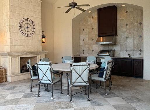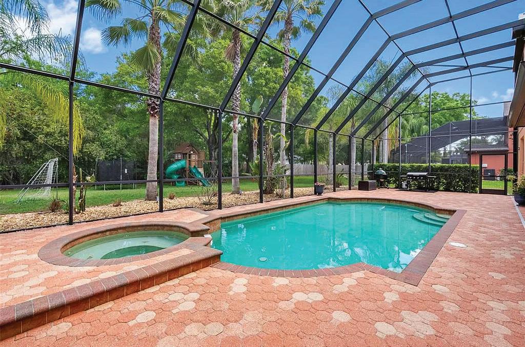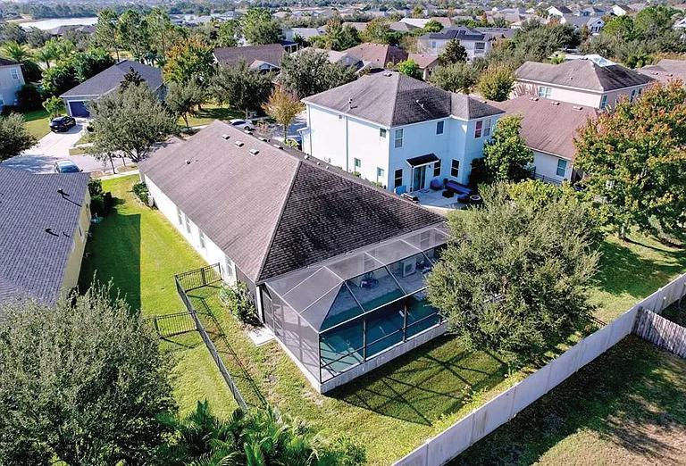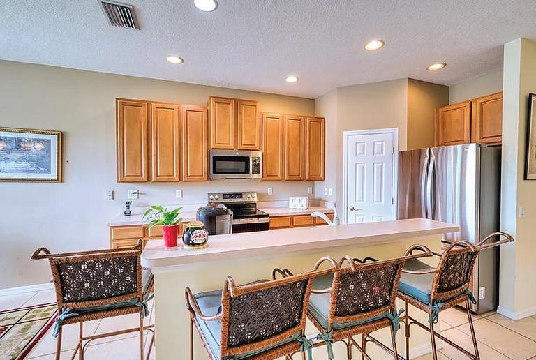 Outdoors, enjoy a spectacular resort-style pool with a lazy river and a fully equipped grill area featuring refrigeration and iceideal for entertaining. Inside, discover a bowling alley, adding a unique experience.