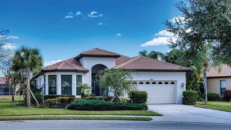 $439,900 Centrally located gated community! Spacious floor plan with coffered ceilings offering a lanai overlooking the natural preserve and pond area.