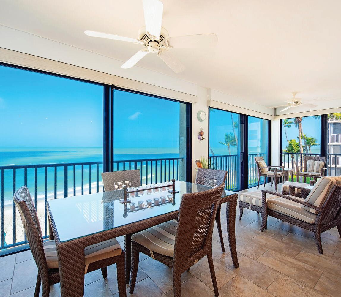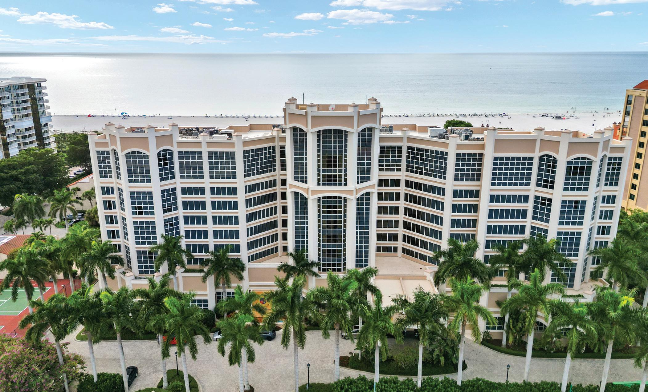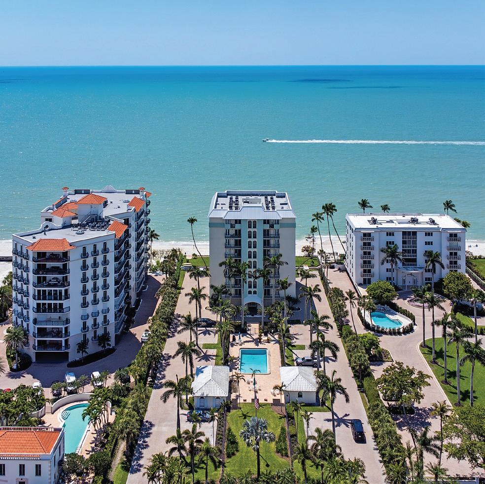 3 BEDS | 3.5 BATHS | 2,947 SQ FT | $3,550,000 Sweeping views of the Gulf! Lots of sun and sand from this spectacular beachfront end unit! Well-designed, award-winning floorplan offering spacious formal and casual living areas plus glassed and screened lanai with Nana doors and remote blinds. Open island kitchen with exotic granite, Thermadore and Kitchenaid appliances including induction cooktop and free-standing icemaker. Foyer entry with marble floors, art niche and powder room with abalone insets. Formal living and dining area with feature wall and beach view. Spacious guest bedrooms offering en-suite bathrooms with beautiful accent tile, one with Eastern balcony. Extensive lighting system throughout, TV’s and audio equipment included. Low-density building of 16 units, under building parking, extra storage, pool, exercise room, beachfront seating area and on-site manager. 1255 GULF SHORE BLVD N #3N, NAPLES,