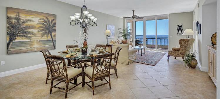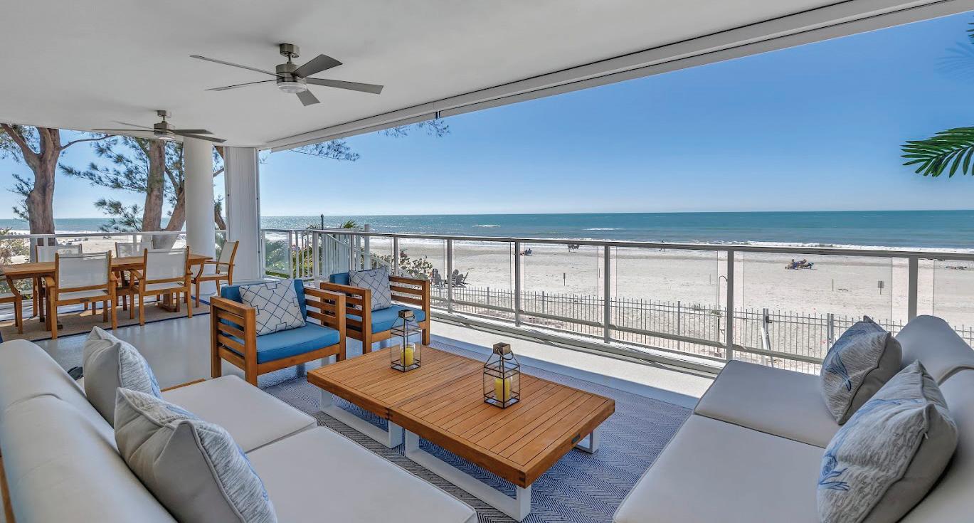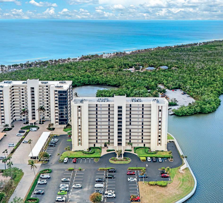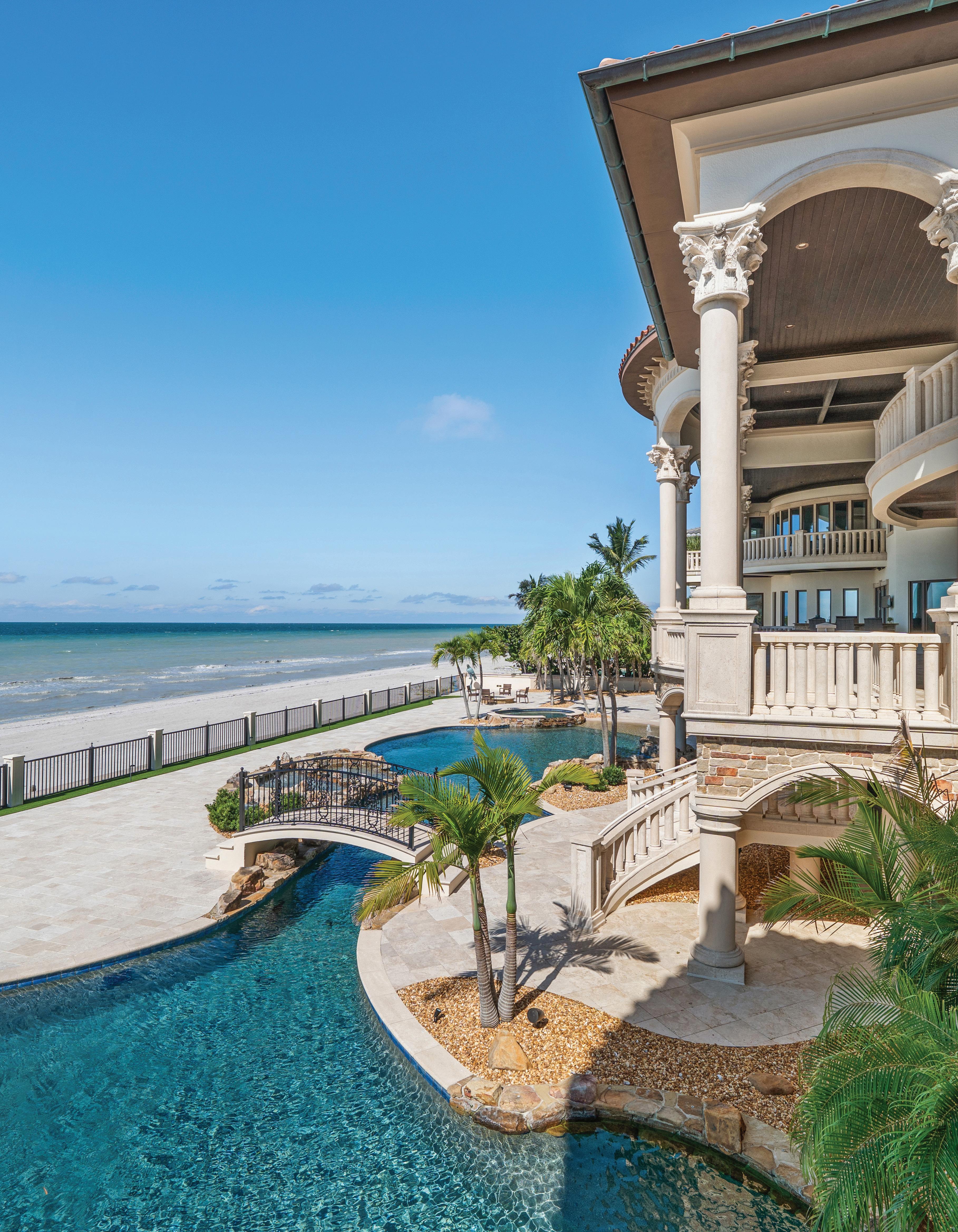 3 BEDS | 3.5 BATHS | 2,947 SQ FT | $3,550,000 Sweeping views of the Gulf! Lots of sun and sand from this spectacular beachfront end unit! Well-designed, award-winning floorplan offering spacious formal and casual living areas plus glassed and screened lanai with Nana doors and remote blinds. Open island kitchen with exotic granite, Thermadore and Kitchenaid appliances including induction cooktop and free-standing icemaker. Foyer entry with marble floors, art niche and powder room with abalone insets. Formal living and dining area with feature wall and beach view. Spacious guest bedrooms offering en-suite bathrooms with beautiful accent tile, one with Eastern balcony. Extensive lighting system throughout, TV’s and audio equipment included. Low-density building of 16 units, under building parking, extra storage, pool, exercise room, beachfront seating area and on-site manager. 1255 GULF SHORE BLVD N #3N, NAPLES,