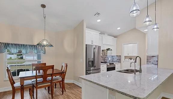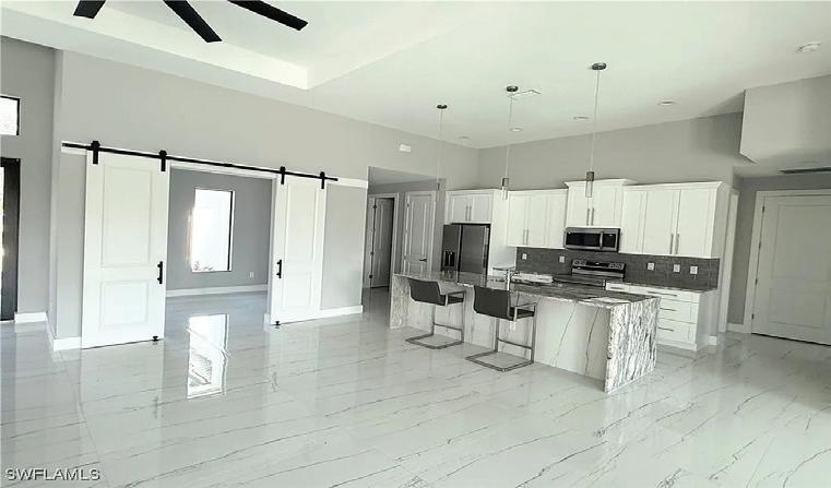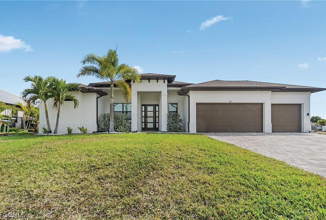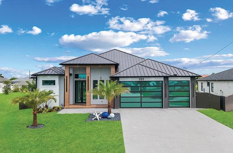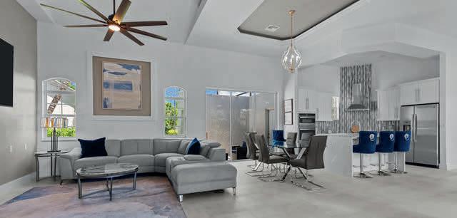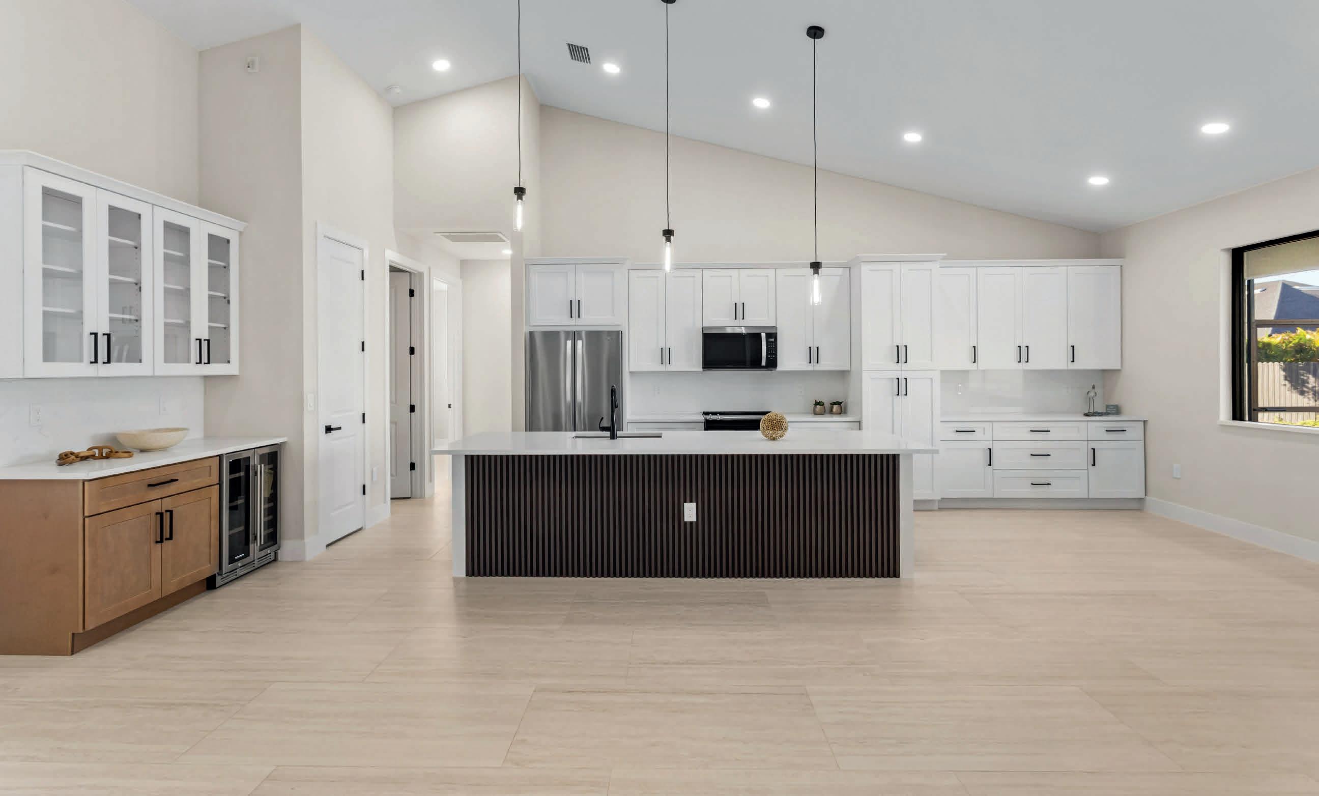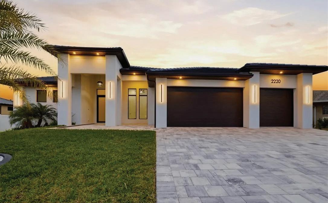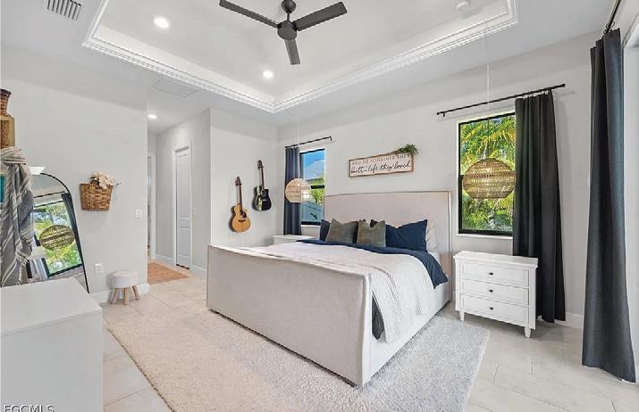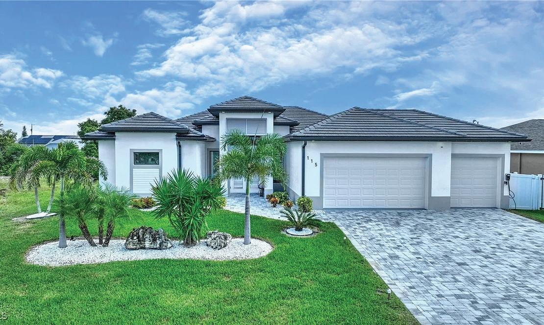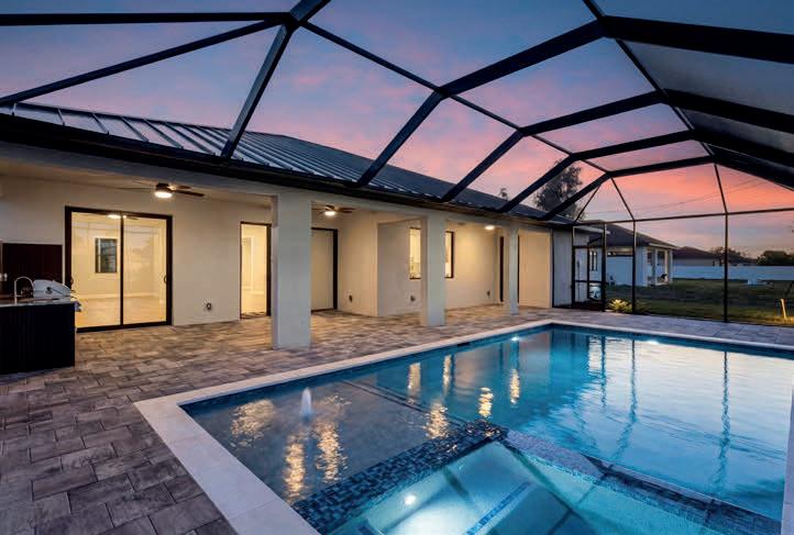 Experience the pinnacle of Southwest Florida living in this brand-new ultra-luxury residence located in one of Cape Coral’s fastest-growing areas. Perfectly positioned just minutes from the boat ramp and near the highly anticipated Seven Islands Project and The Grove at Cape Coral, this home places you at the center of the city’s future waterfront dining, entertainment, and boating lifestyle. Inside, over 2,400 square feet of thoughtfully designed living space unfolds beneath soaring ceilings and expansive 10’ impact glass sliders that flood the home with natural light and create seamless indoor-outdoor living. Imported 48x48 porcelain tile flooring, designer lighting, and sleek architectural lines elevate the home’s modern coastal elegance. The chef’s kitchen is the centerpiece of the home, featuring stunning Taj Mahal countertops, custom cabinetry with integrated lighting, and premium appliances perfect for entertaining. The spacious primary suite offers a true retreat with a custom LED-lit walk-in closet, spa-inspired bathroom, and direct access to the pool area. Step outside to your private resort-style oasis featuring a spectacular 14x28 pool with integrated spa, floating steps, ambient LED lighting, outdoor kitchen, and tropical landscaping designed for relaxation and entertaining. Highlights include smart home features, a spacious 3-car garage, and a prime location near boating, dining, shopping, top-rated schools. This home delivers the ultimate Cape Coral lifestyle.
