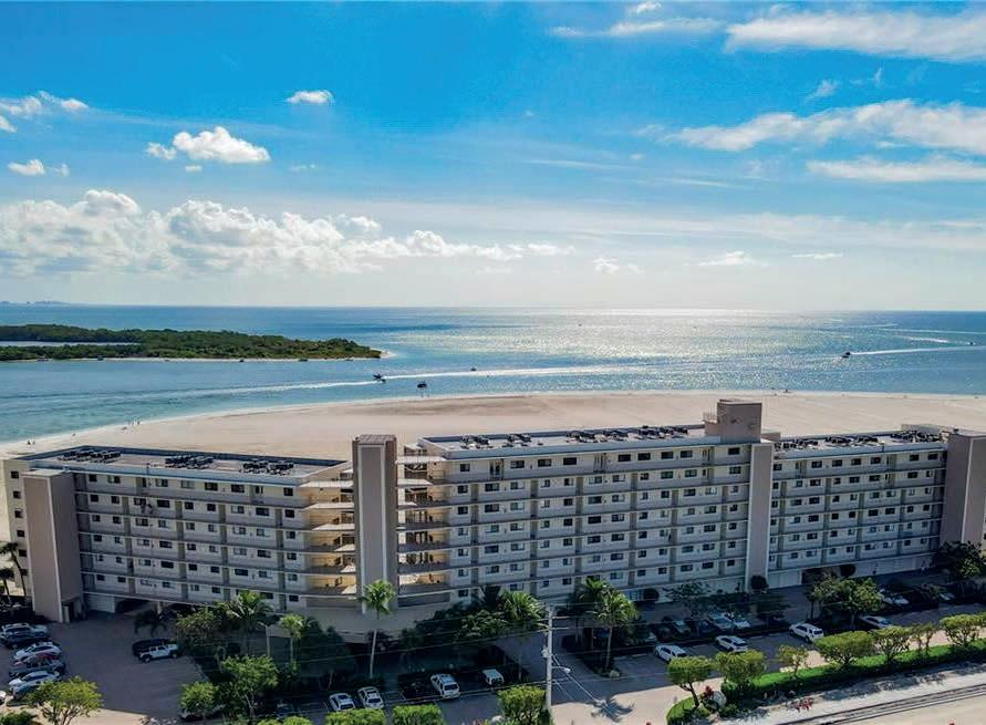 DIRECT BEACHFRONT Views over the captivating Gulf and Lovers key! Well priced two bedroom, two bath condo with weekly rentals allowed. Easy access first floor unit right near the stairs and elevator close by. Gulf-side pool and Sundeck. BBQ Grills, popular complex for vacation rentals and second homeowners on the quiet south end of Island, affording convenient access to Bonita and Naples. Unit needs to be redone as it was damaged by Ian. List price reflects current condition. New impact windows & sliders!