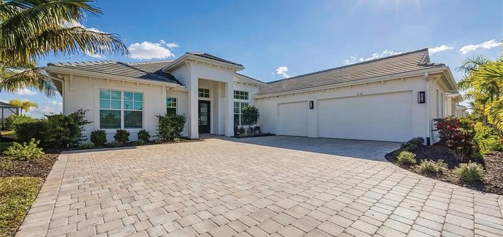 Welcome to a refined expression of Florida luxury living in Talis Park- where modern elegance meets a vibrant golf course lifestyle and currently offering IMMEDIATE GOLF MEMBERSHIP AVAILABILITY (at closing) allowing you to bypass the waitlist. This stunning one-story custom home is perfectly positioned along the community’s championship golf course, providing breathtaking lake and fairway views framed by lovely landscaping. Designed for both comfort and sophistication, the residence features three spacious bedrooms plus a private den/home office, ideal for remote work or quiet retreat. At the heart of the home, the fully remodeled gourmet kitchen showcases high-end appliances (Gaggenau and Thermador), custom cabinetry, built in wine cooler, and an expansive island which is perfect for entertaining or everyday living. The open concept design flows seamlessly into the main living area. No carpet found in this home, only stunning Italian wide plank tile. Step outside to your private oasis where indoor and outdoor living blend effortlessly. The saline pool and spa overlook tranquil water and the manicured golf course, creating a serene backdrop for relaxation.
