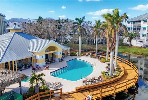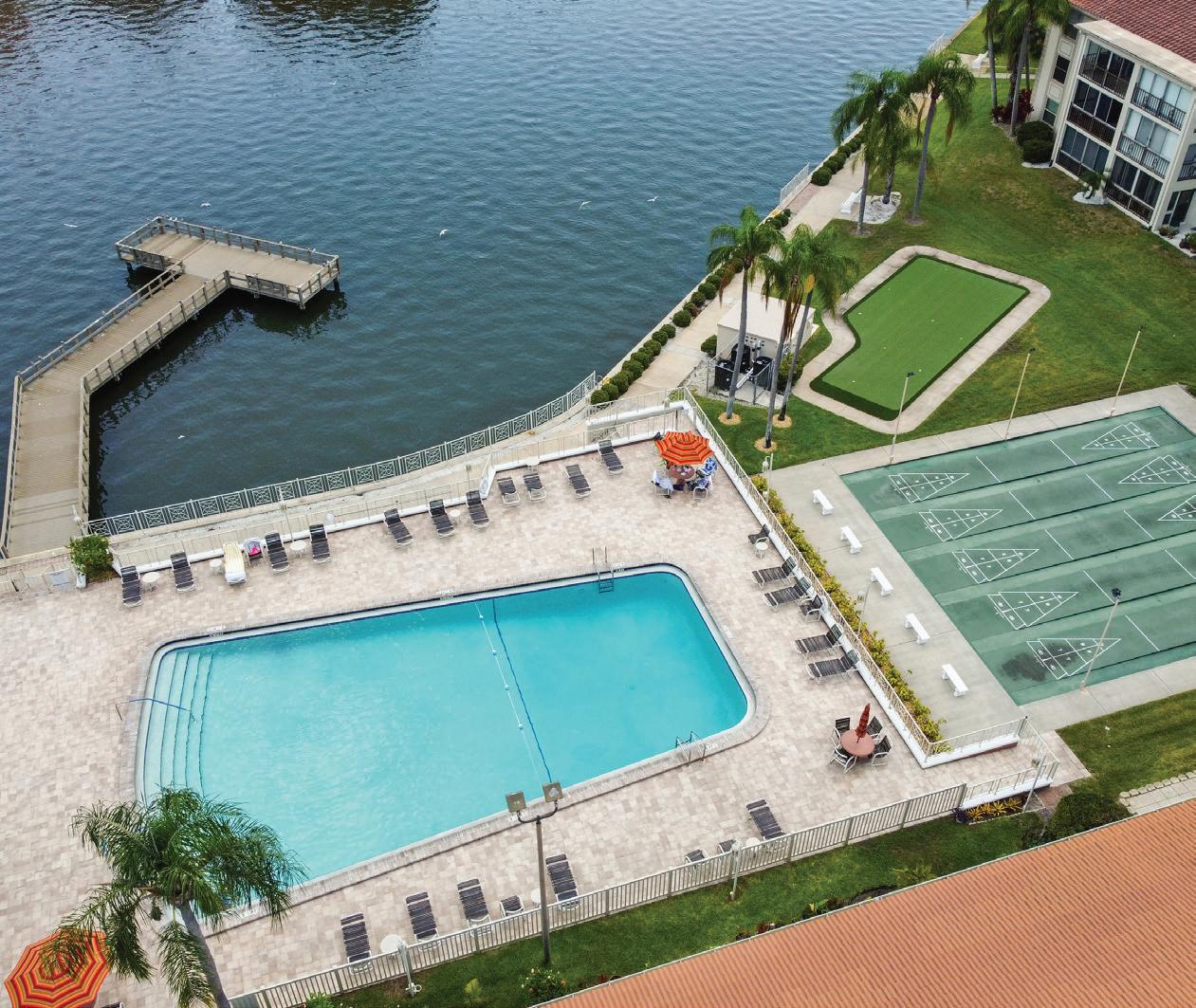 • Resort amenities: heated pool, fitness, pickleball, tennis & bocce