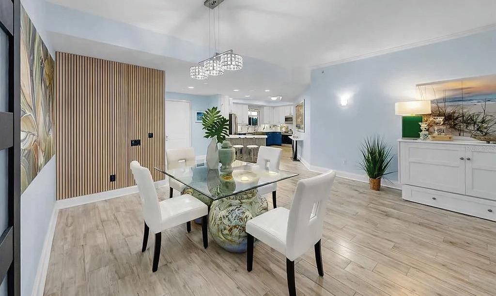 Searching for the perfect waterfront home? This tropical oasis in Broadwater, St. Petersburg offers over 100 feet of water frontage, a replaced seawall (2022), and protected deep sailboat water with a private dock and 10,000 lb lift—plus an open water feel. The home features a splitbedroom layout, spacious primary suite, high-end kitchen with quartz island, and seamless indoor-outdoor living to a screened lanai with a heated pool. Enjoy wildlife, stunning sunsets, and a prime location near downtown, Gulf beaches, and I-275.